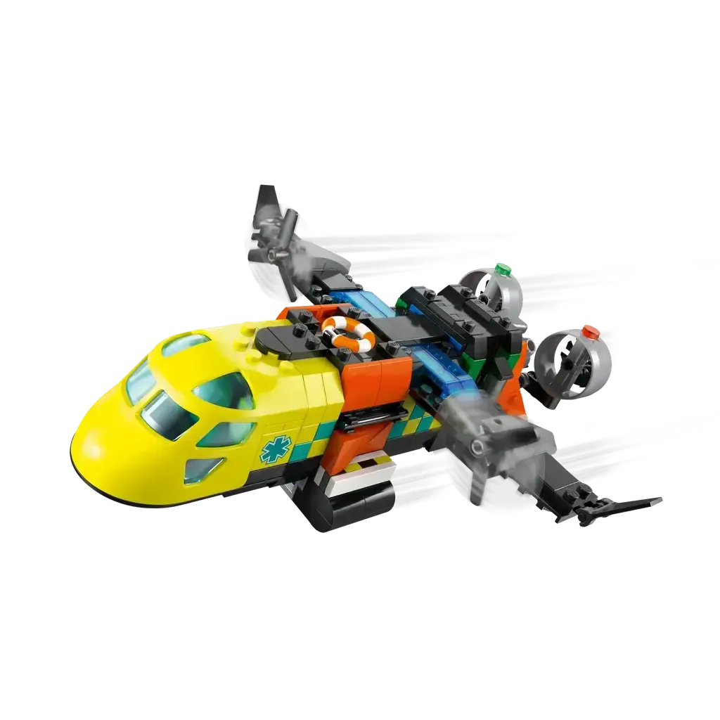 - INCLUDES 3 ICONIC VEHICLES – This model building kit includes a LEGO® City medical plane, coast guard hovercraft and service truck, plus medic, coast guard and mountain rescuer minifigures