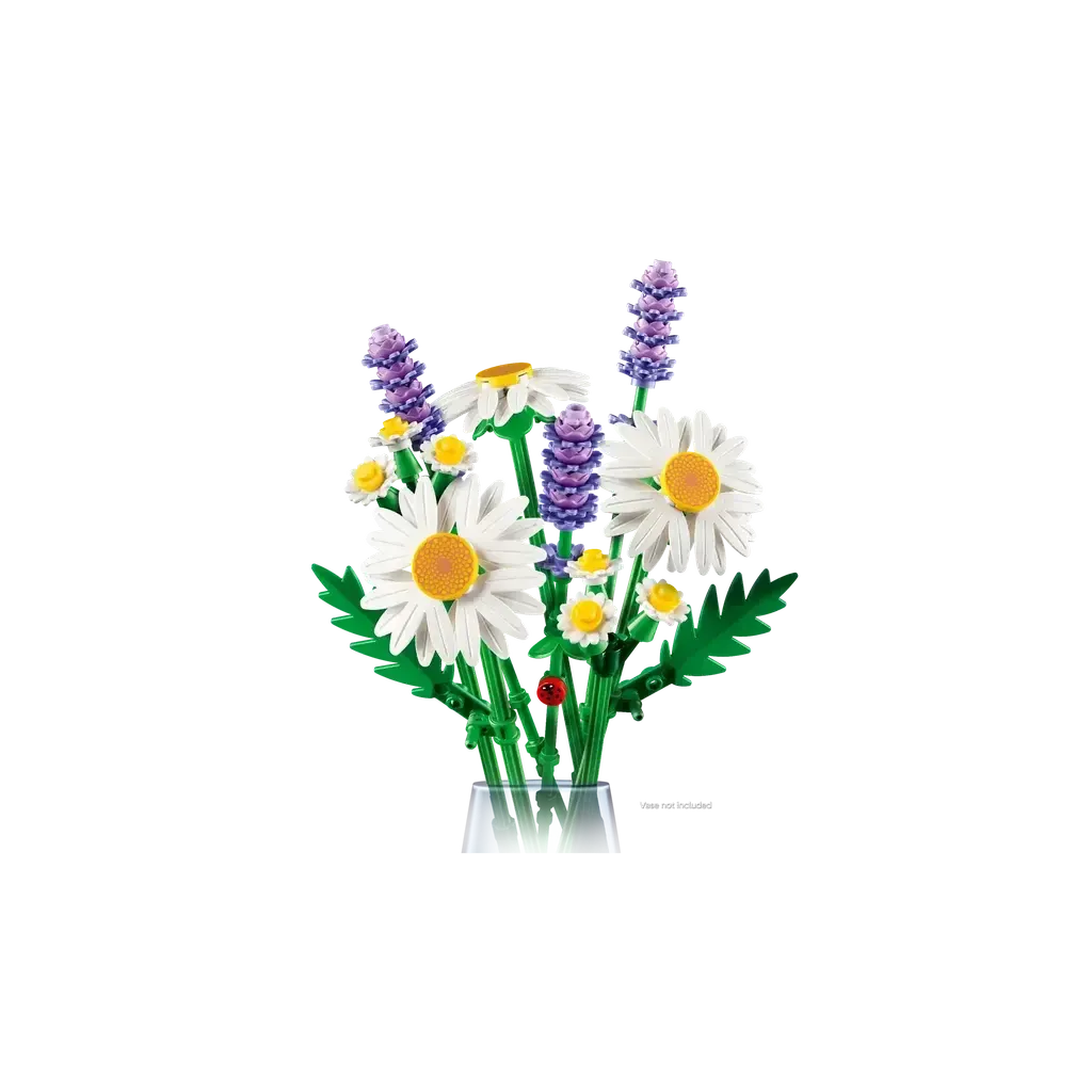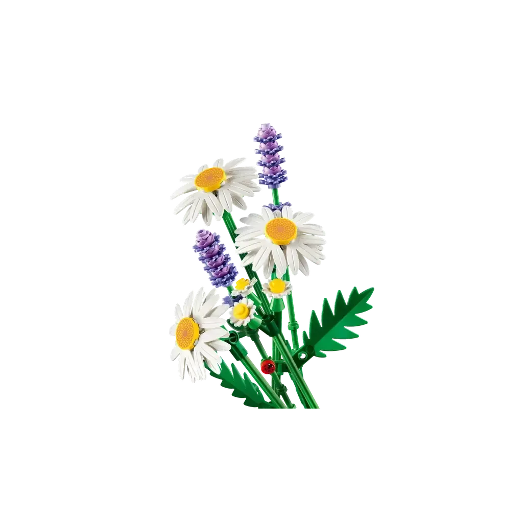 - LEGO® FLOWER BOUQUET – Budding florists will have fun building 3 large daisies, 2 stems of small daisies, 3 calming lavenders and vibrant green stems