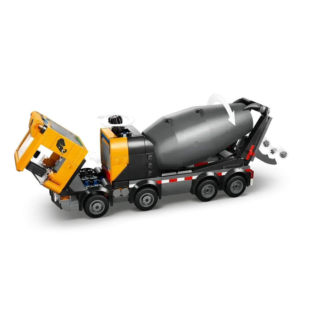 - CEMENT TRUCK TOY WITH AUTHENTIC FUNCTIONS – Kids can lower the cement chute, turn a dial to rotate the drum for mixing and dispensing the LEGO® cement elements and tilt the cab to access the engine