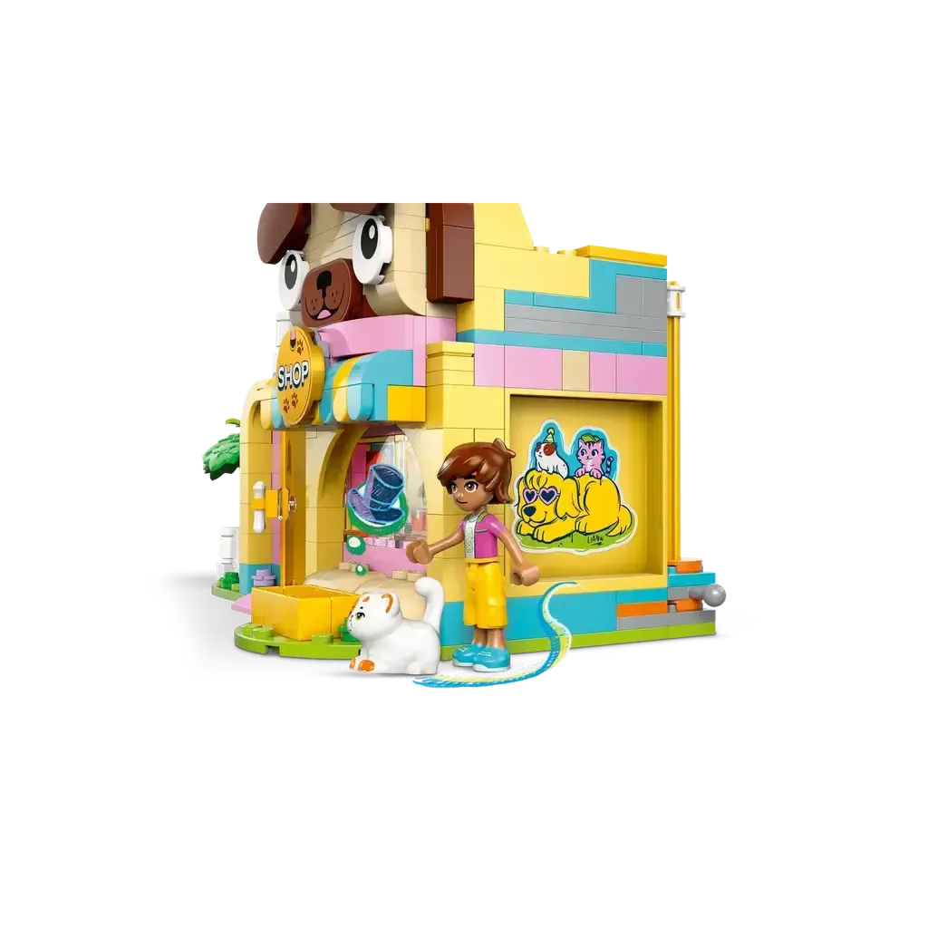 • Pet-grooming toy and pet accessories shop – The dog-shaped two-story building features a pet accessories shop and a grooming station so kids can enjoy hours of fun pampering the animals