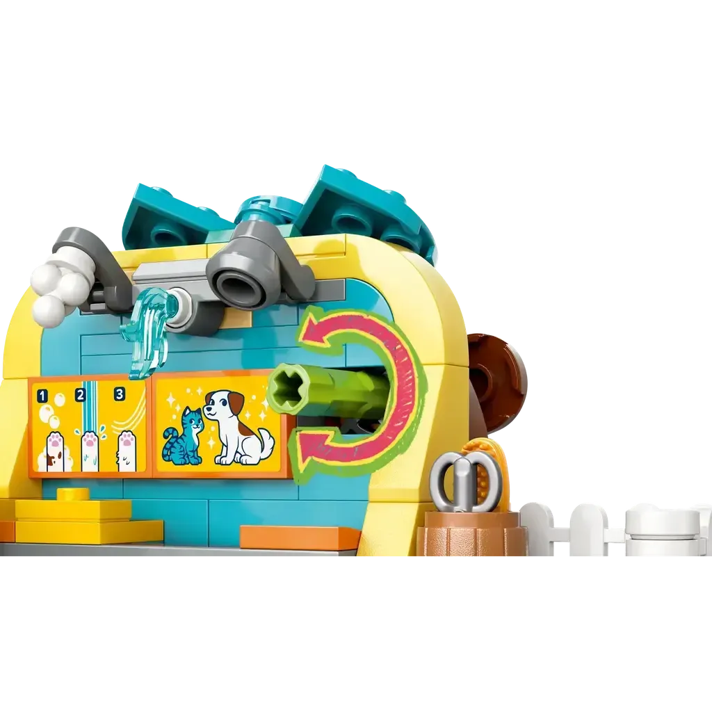 • Ride the elevator – Cute toy details include the elevator that takes the pets to the grooming station and a conveyor belt that moves them through the soaping, washing and drying stations