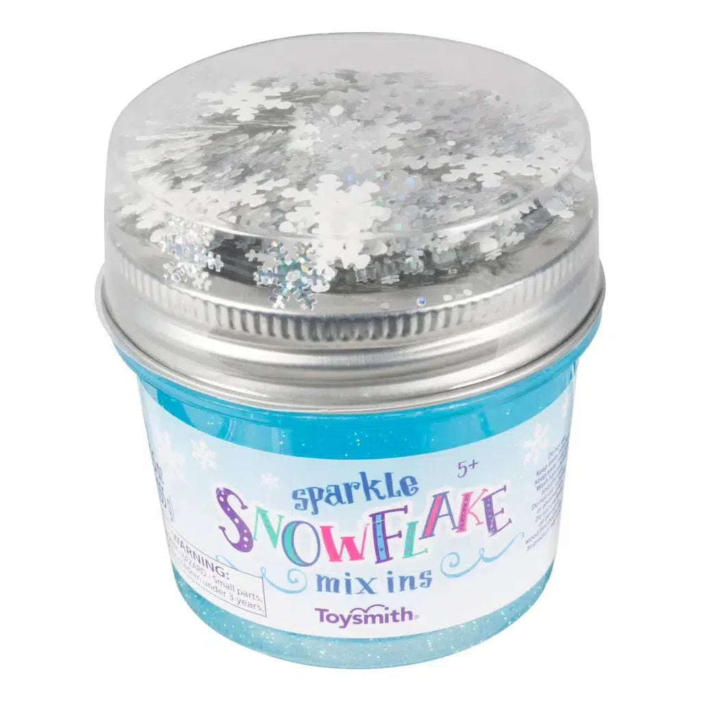 Each jar of Snowflake Mix-Ins includes slime and holographic glitter confetti shaped like sparkling snowflakes. Plastic container includes a resealable twist top. 1 container holds 5.5 ounces of icy blue, glitter slime that is nonstick.