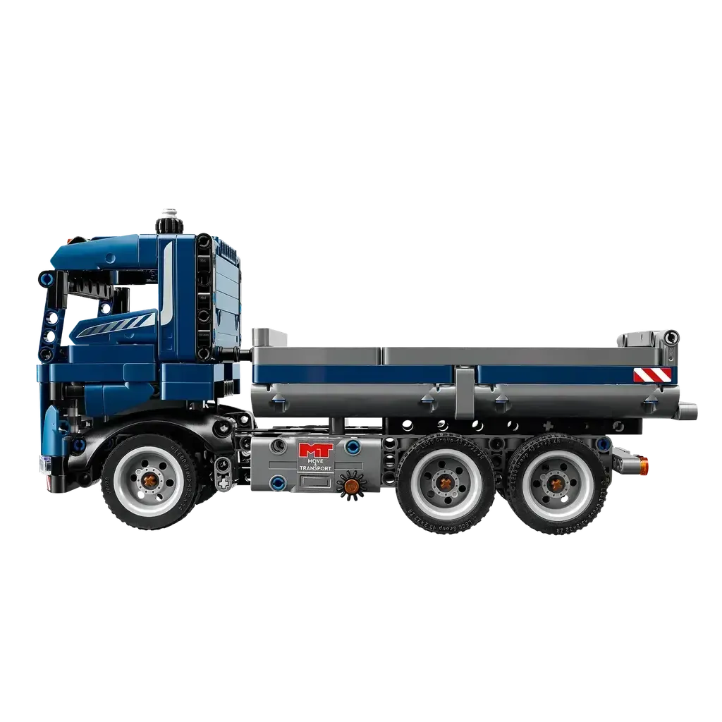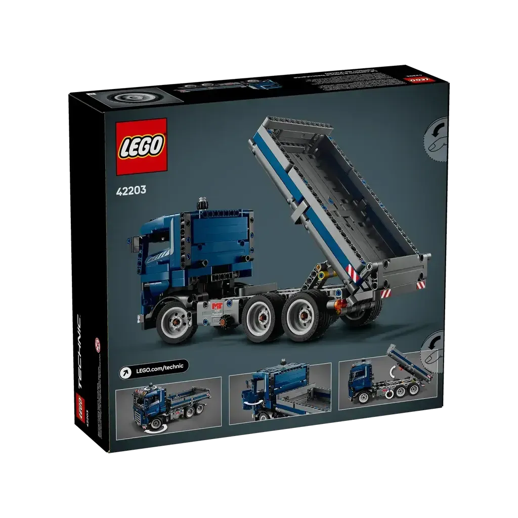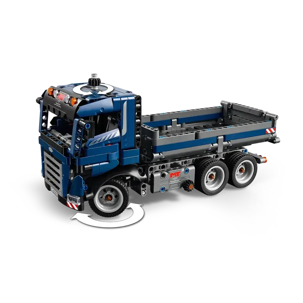 Kids aged 9 and up can create endless construction site adventures with the LEGO® Technic™ Tipping Dump Truck toy (42203). This blue construction truck toy vehicle set lets kids aged 9 and up imagine a busy working day operating their tipper truck. Steer the truck into position then turn the knob on the side of the truck to tip the lid. Open the doors to see inside the cab, then drive the truck to its next construction-site task.