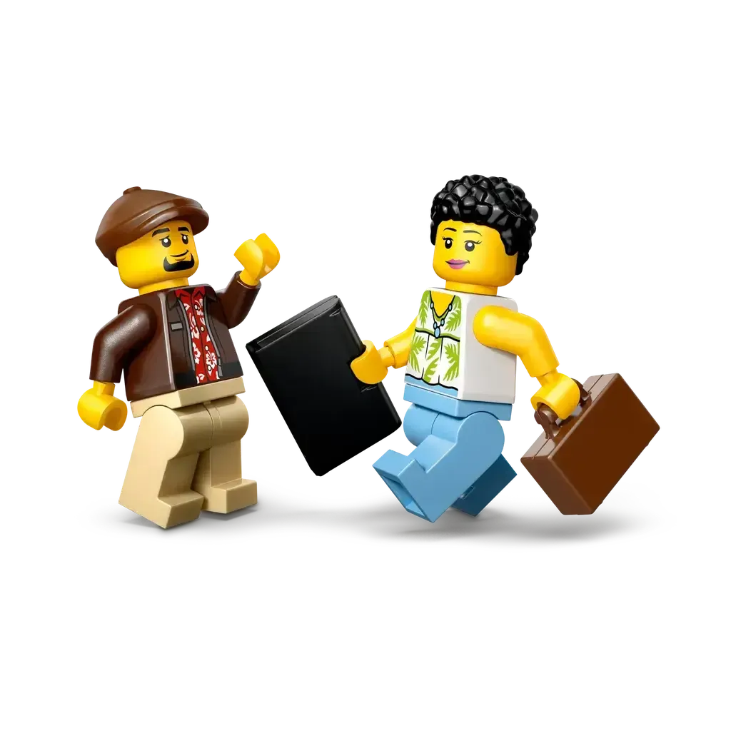 - FUN STICKERS AND MINIFIGURE ACCESSORIES – Includes GPS screen, taxi logo, advertisement and battery stickers for the toy vehicle, plus luggage accessories for the tourist minifigure