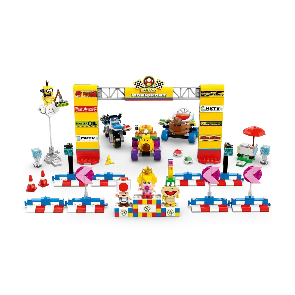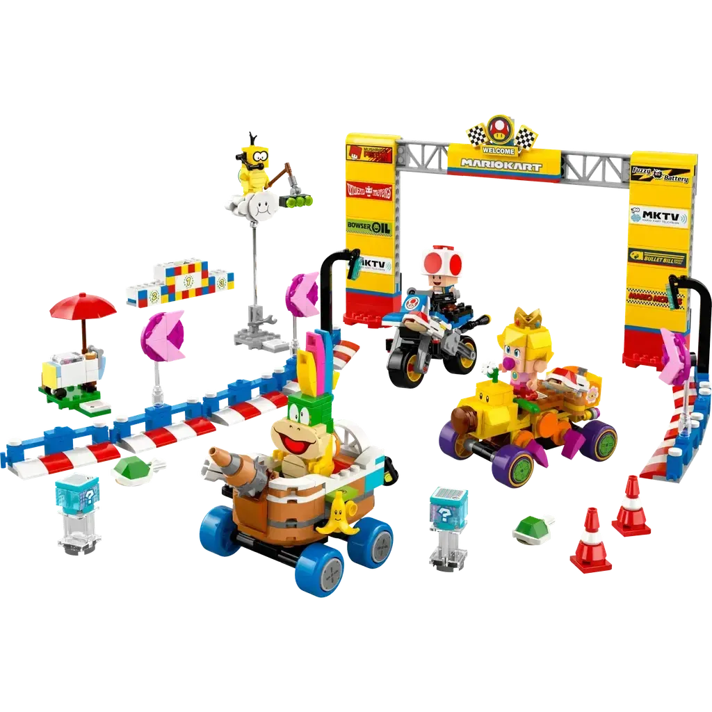 4 collectible Mario Kart™ characters – This LEGO® brick-built playset includes Baby Peach, Lakitu, Lemmy and Toad toy figures with assorted accessories for role-play adventures