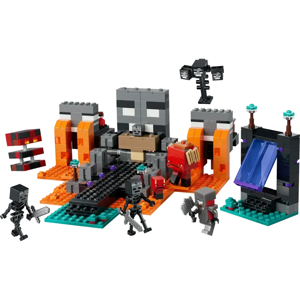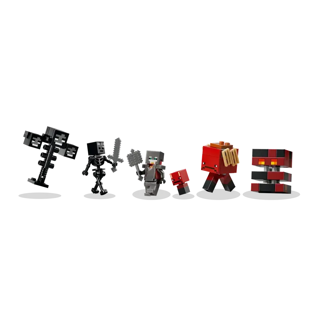 - 7 MINECRAFT® CHARACTERS – Join a Crimson Warrior and 2 wither skeleton mob figures, plus a strider, baby strider, wither and magma cube mob figures, in the LEGO® Minecraft® Wither Battle (21590)