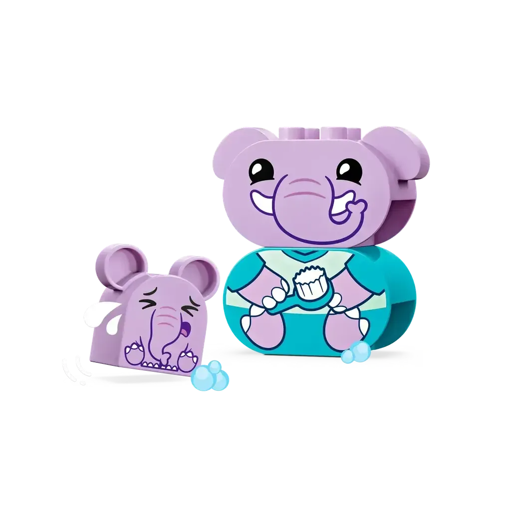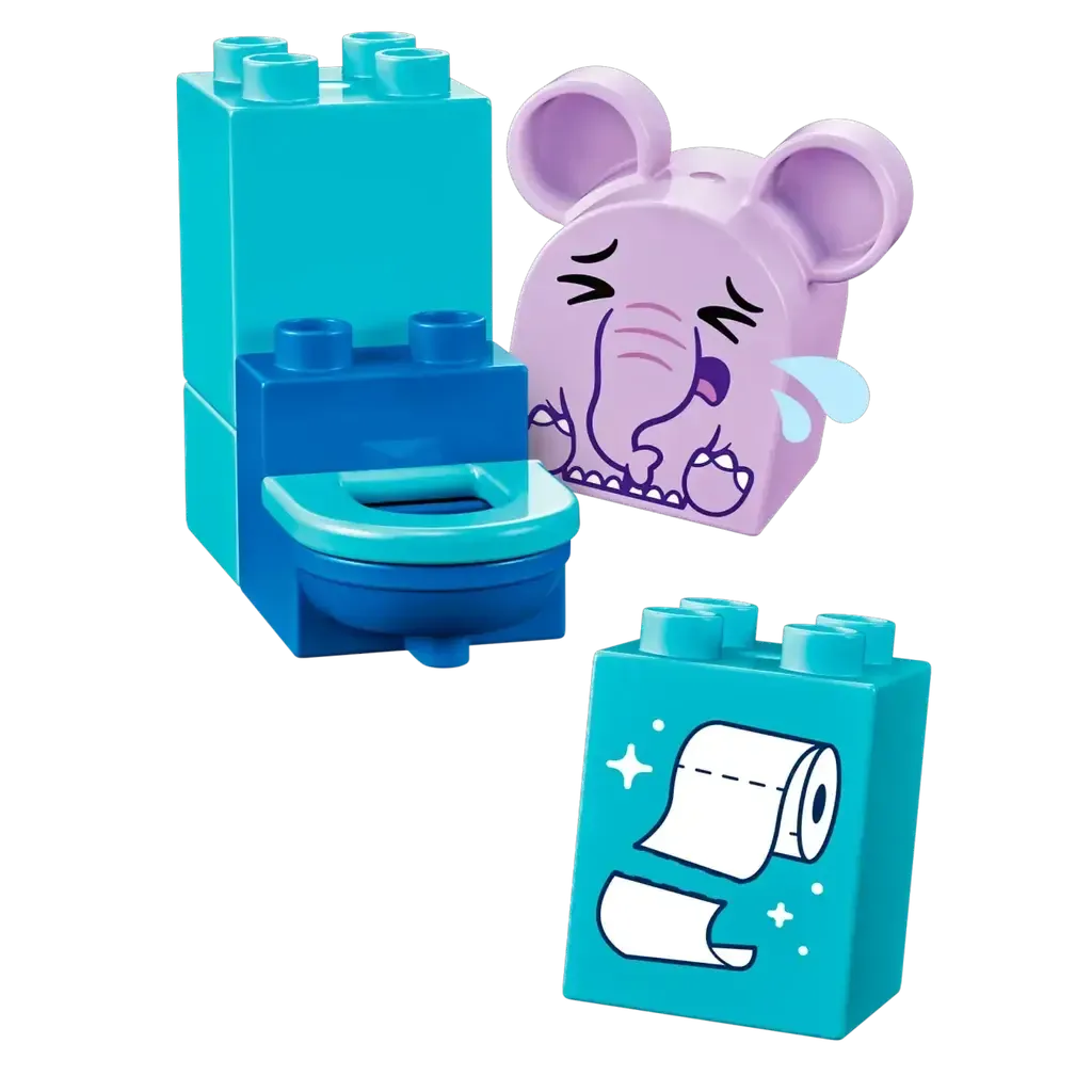 This toy animals playset comes with 2 elephant toy figures – a parent and a baby – plus the DUPLO bricks needed to build a bath, shower and toilet. Parents and preschool kids join their new LEGO DUPLO animal friends in the bathroom, enjoying the fun role play of getting the baby clean while exploring the importance of washing routines. This early development and activity toy includes a baby elephant animal figure who wears either a happy or a sad expression to help toddlers play out their feelings around washing routines. This bathtime toy playset is also a great way to spark fun conversations with little ones around potty training.