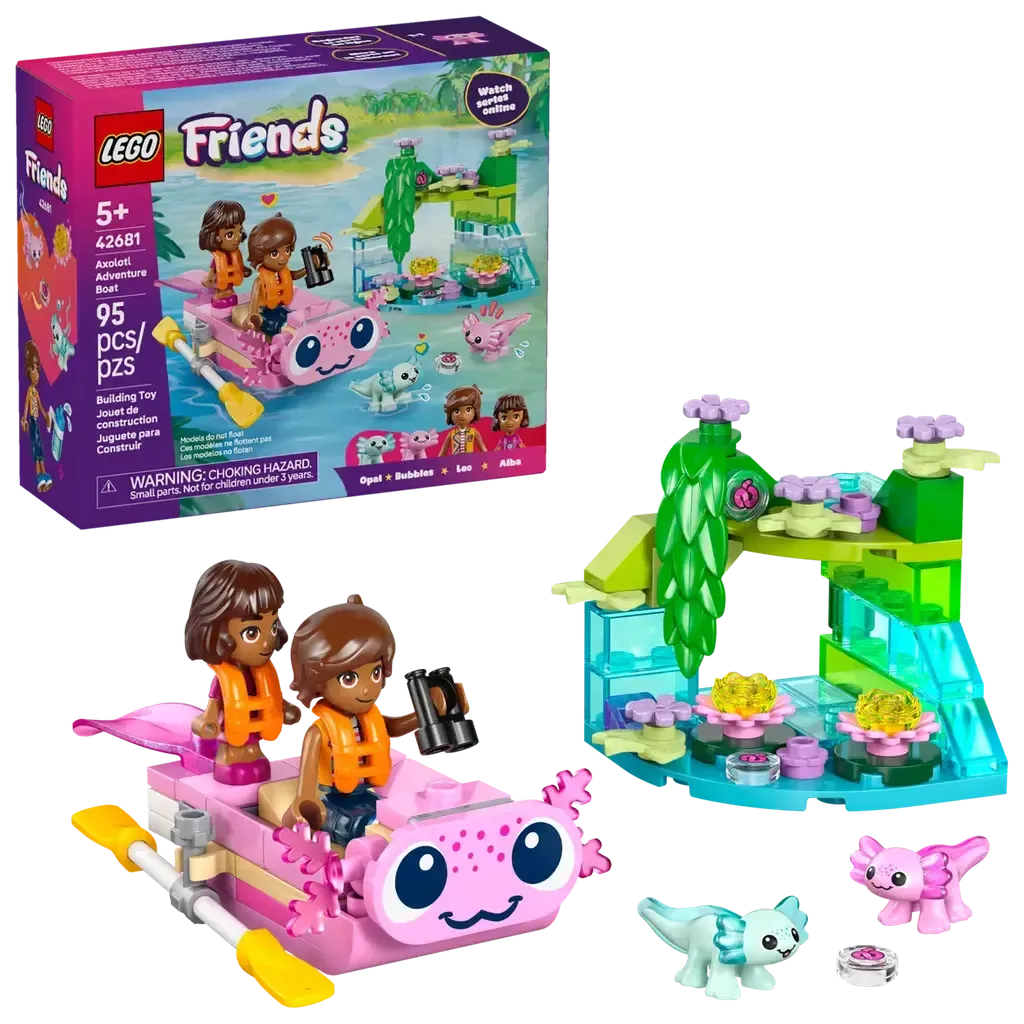 • AXOLOTL TOY BUILDING SET – This kids’ LEGO® Friends Axolotl Adventure Boat (42681) includes a mini boat, 2 characters and 2 mini axolotl toys, launching fun play for girls and boys ages 5 years and up