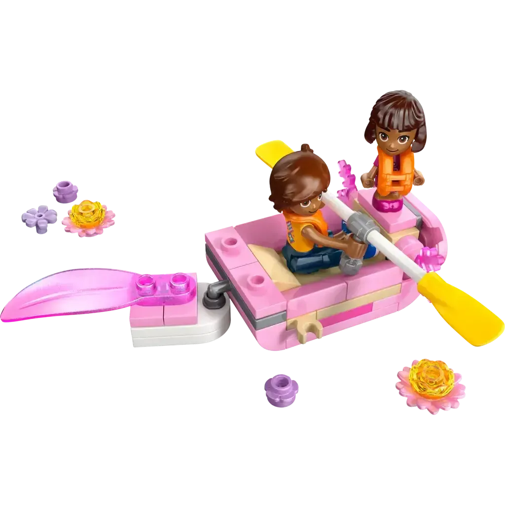 Inspire girls and boys ages 5 and up to tell fun stories with the LEGO® Friends Axolotl Adventure Boat (42681) toy for kids. The set comes with 1 minidoll, 1 microdoll, 2 mini axolotls and accessories to encourage creative play. Kids can have lots of fun with the axolotl-themed boat which features a friendly face and a wobbling tail. It also includes seats for the characters plus oars and 2 life vests. The additional side build comes with plants, flowers and water so kids can create the natural habitat for the axolotls. This pretend play toy makes a great gift for girls and boys and animal lovers. With the LEGO Builder app, kids can enjoy an intuitive building adventure where they can zoom in and rotate sets using 3D building instructions, save sets and track progress. Set contains 95 pieces.