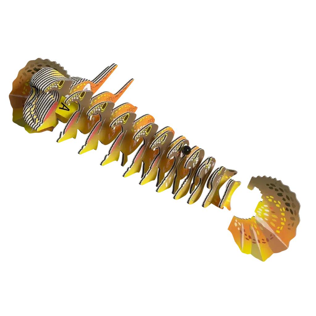 EUGY - a super-fun 3D puzzle that's eco-friendly and can be assembled in 10 to 20 minutes! Assemble this feisty frilled lizard puzzle and experience the magic of EUGY! This collectable toy is great for STEM concepts and craftable fun. It's sure to delight kids and adults alike! There are over 90 designs and counting for you to collect and enjoy!