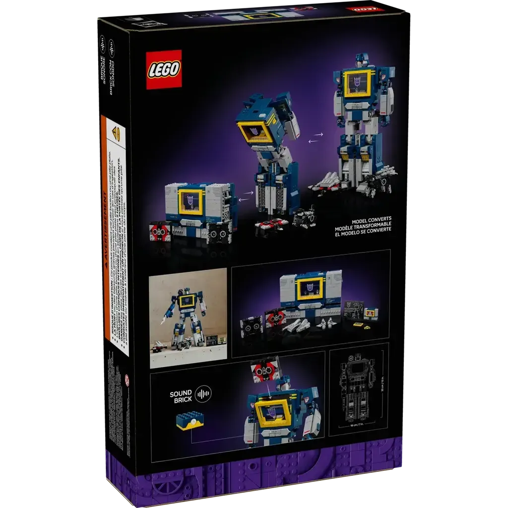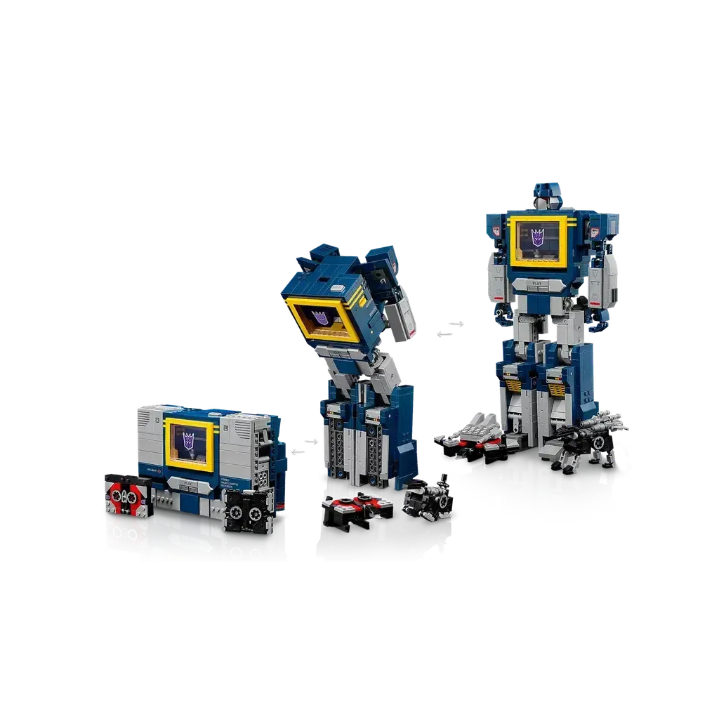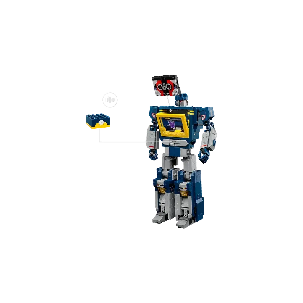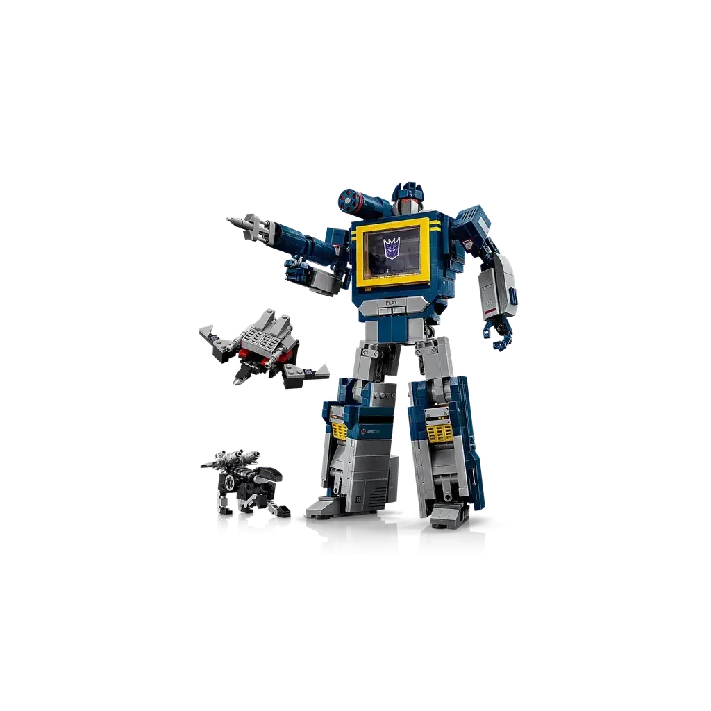 - What’s in the box? – Everything you need to craft a detailed LEGO® Icons Transformers: Soundwave figure with rocket pod, laser blaster and dart accessories, plus Ravage and Laserbeak figures