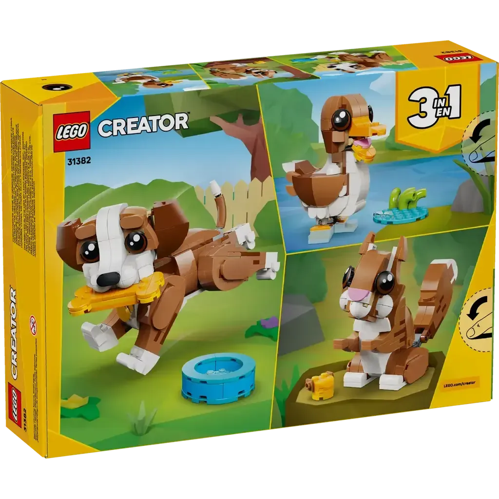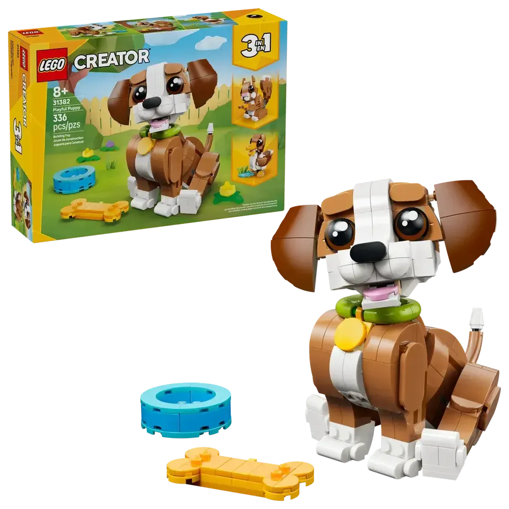 - 3 IN 1 ANIMAL TOY – LEGO® Creator 3 in 1 Cute Animals: Playful Puppy Dog building toy (31382) lets girls, boys and kids ages 8 plus build and rebuild 3 animal figures with the same bricks