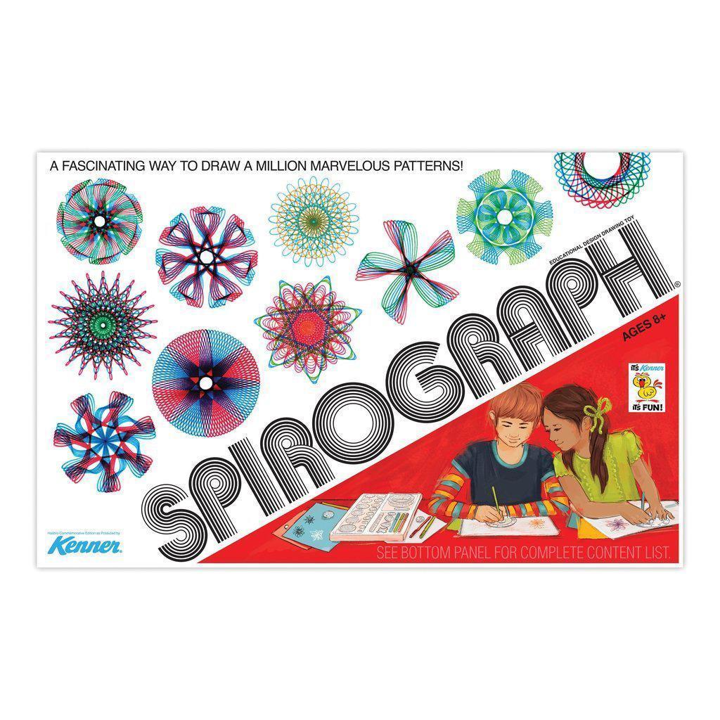 This commemorative edition Spirograph® set is a reproduction of the original—just like you remember—featuring throwback packaging and retro graphics!