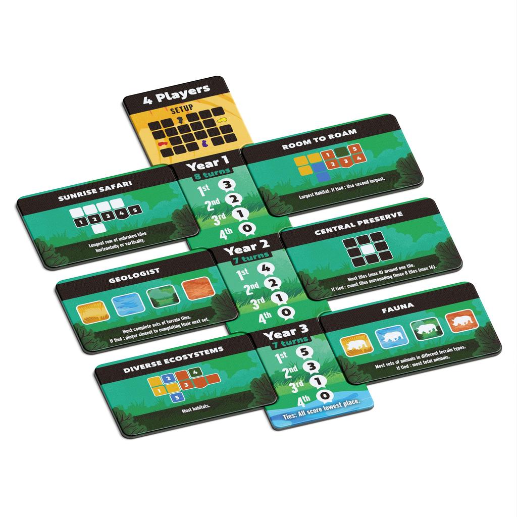 Welcome to the jungle! Habitats is a tile-laying game. Drive your jeep around and choose the best animals for your wildlife preserve. A successful preservation is more than just a working habitat. You'll also have to build tourist destinations, campgrounds, and watchtowers!