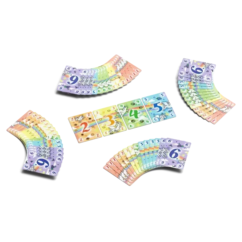 Rainbow is a quick-playing hand management game where players play solo cards, sets, or runs to win points on cards in the center of the table.
