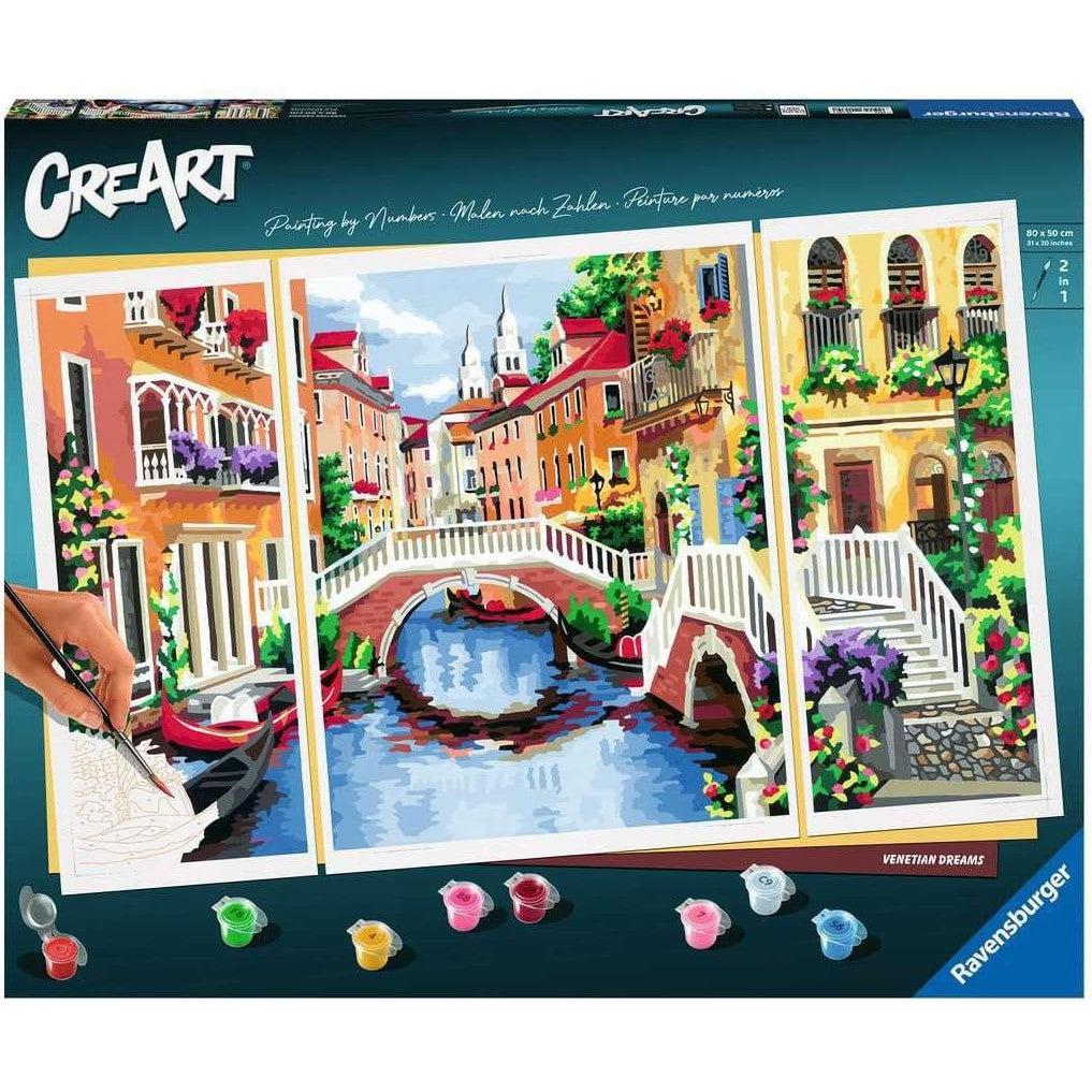Say “arrivederci” to your stress! Relax and enjoy creating your vibrant “Venetian Dreams” triptych with this CreArt Painting by Numbers set!