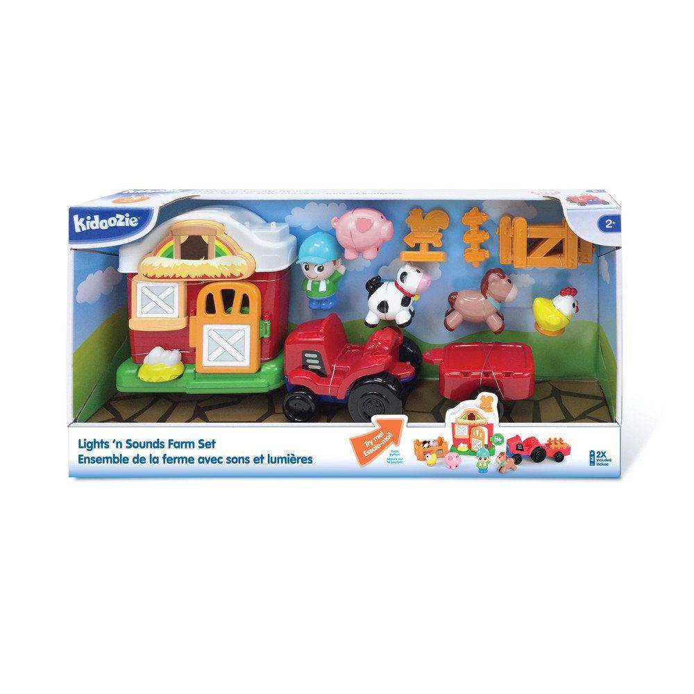 This set comes with everything your child needs for their own farm adventure. The farmer fits perfectly in his tractor so they can drive all to and from the barn all day. This playset features interactive lights and sounds to really bring your child's imagination to life. It has a convenient on/off switch as well, so once playtime is over, you don't have to worry about any rogue market noises. Kidoozie toys are engaging, educational and FUN. Our broad range of high-quality toys have won numerous awards and are safe and well designed. Innovative toys encourage movement, problem-solving and pretend play through various themes. Stimulate the imagination and enable learning through play. Package contains (1) Kidoozie Lights 'n Sounds Playset. Includes. Requires 2 AA batteries (included). Suitable for children ages 2 years and older.