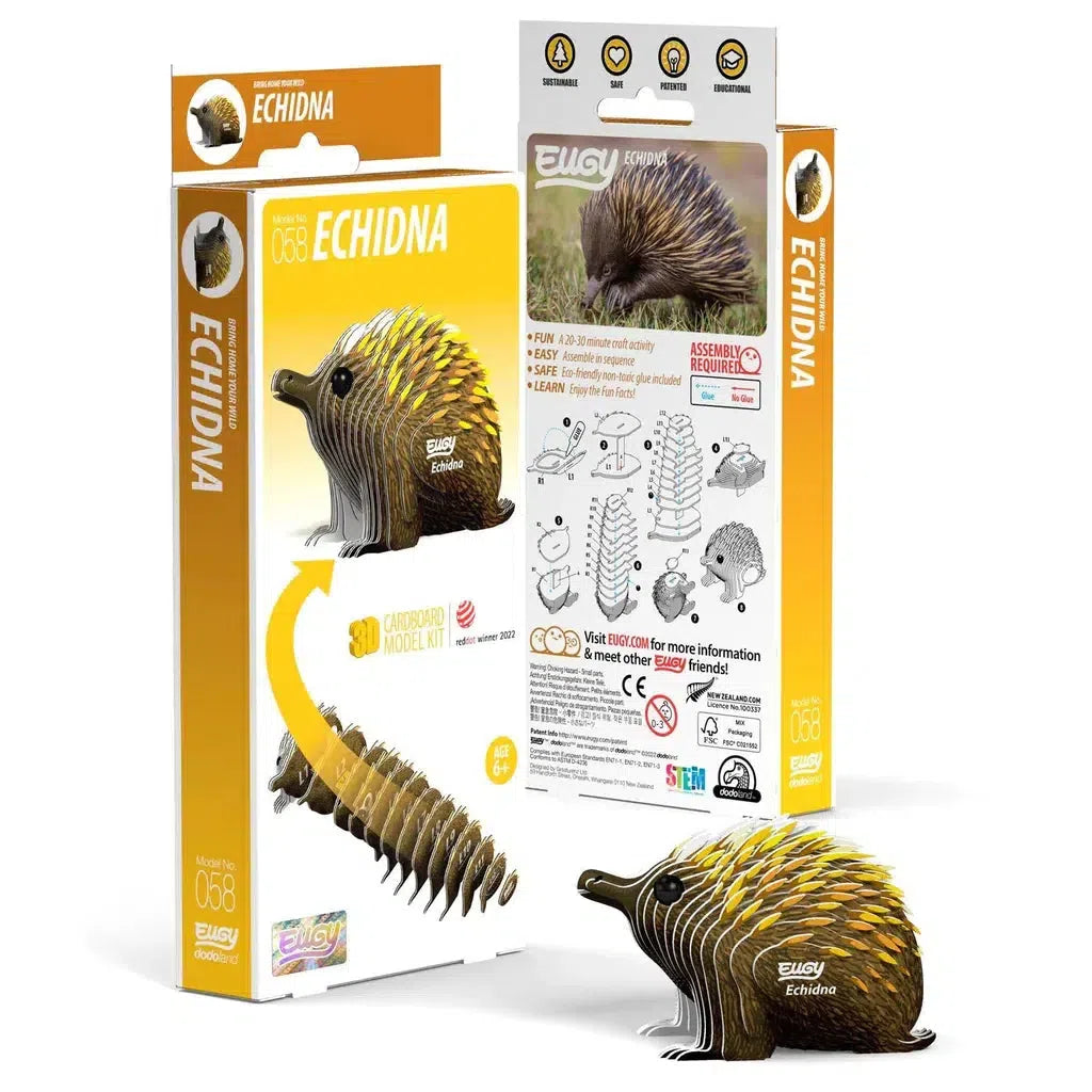 EUGY - a super-fun 3D puzzle that's eco-friendly and can be assembled in 10 to 20 minutes! Assemble this adorable Echidna puzzle and experience the magic of EUGY!