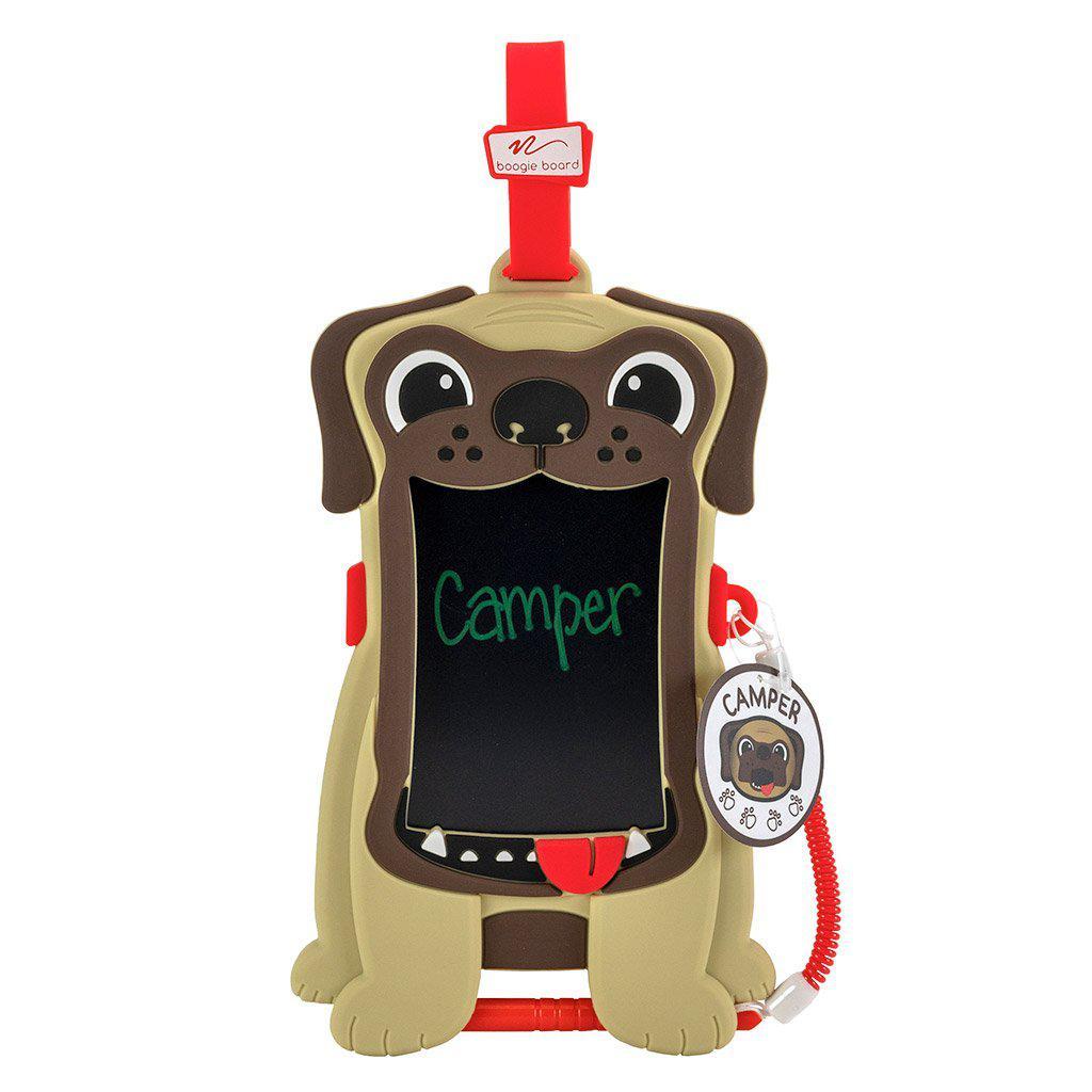 Kids can doodle with anything, including the attached stylus, a pen cap or even their fingernail. With the push of Camper's nose, the doodle board instantly clears itself. There are no erase marks or wiping needed! Perfect for kids who are using their imagination to write and create with intention and purpose.