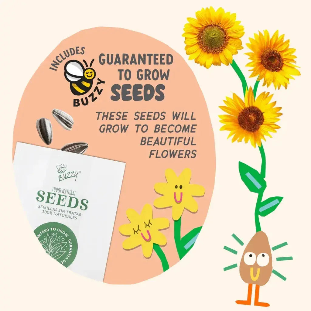 Bright Stripes Paint & Grow Go kits allow kids to use their paint brush and green thumb at the same time! A painting set and gardening activity all in one. Paint a high-quality ceramic vase shaped as a Silly Banana character. Use the included paint brush and 6 high-gloss paint colors and funny fruit stickers to decorate. Add the growing medium into the vase, pour in water and watch the soil expand like magic! Plant your real Mini Sunflower seeds! These seeds from our friends at Buzzy are guaranteed to grow. If your seeds don’t sprout for any reason, Buzzy will send you a new seed packet for free! With sunlight and diligent watering, you will see sunflowers start to grow in 7 to 14 days.