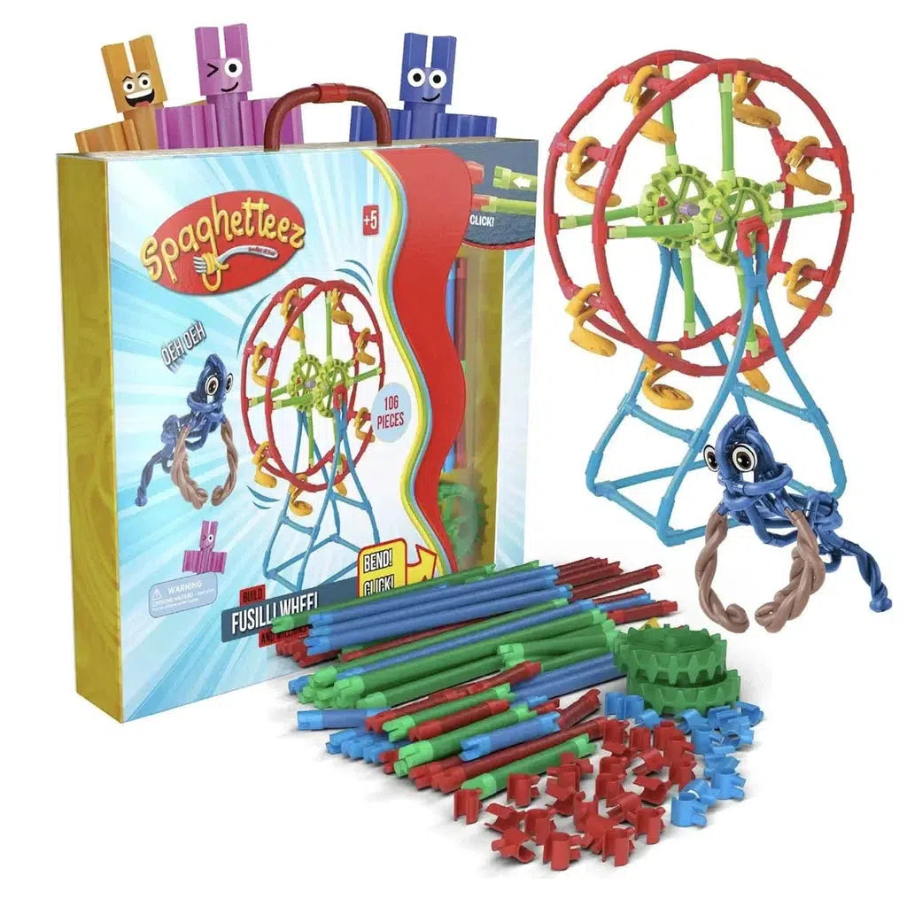 CREATIVE CONSTRUCTION & BUILDING - With this educational observation wheel set from Spaghetteez, children ages 4 and up can build their own thrill ride. The soft and flexible construction sticks can be clicked together - just bend, click, and create!