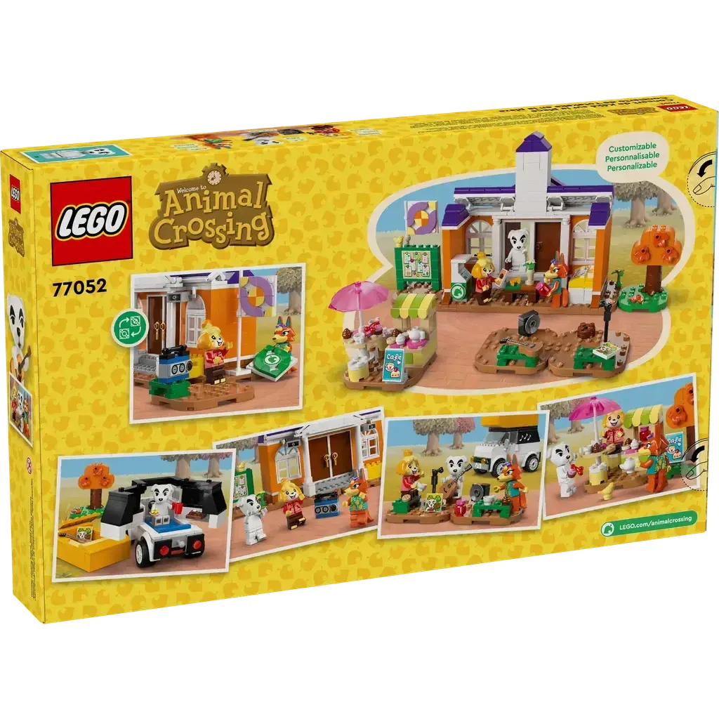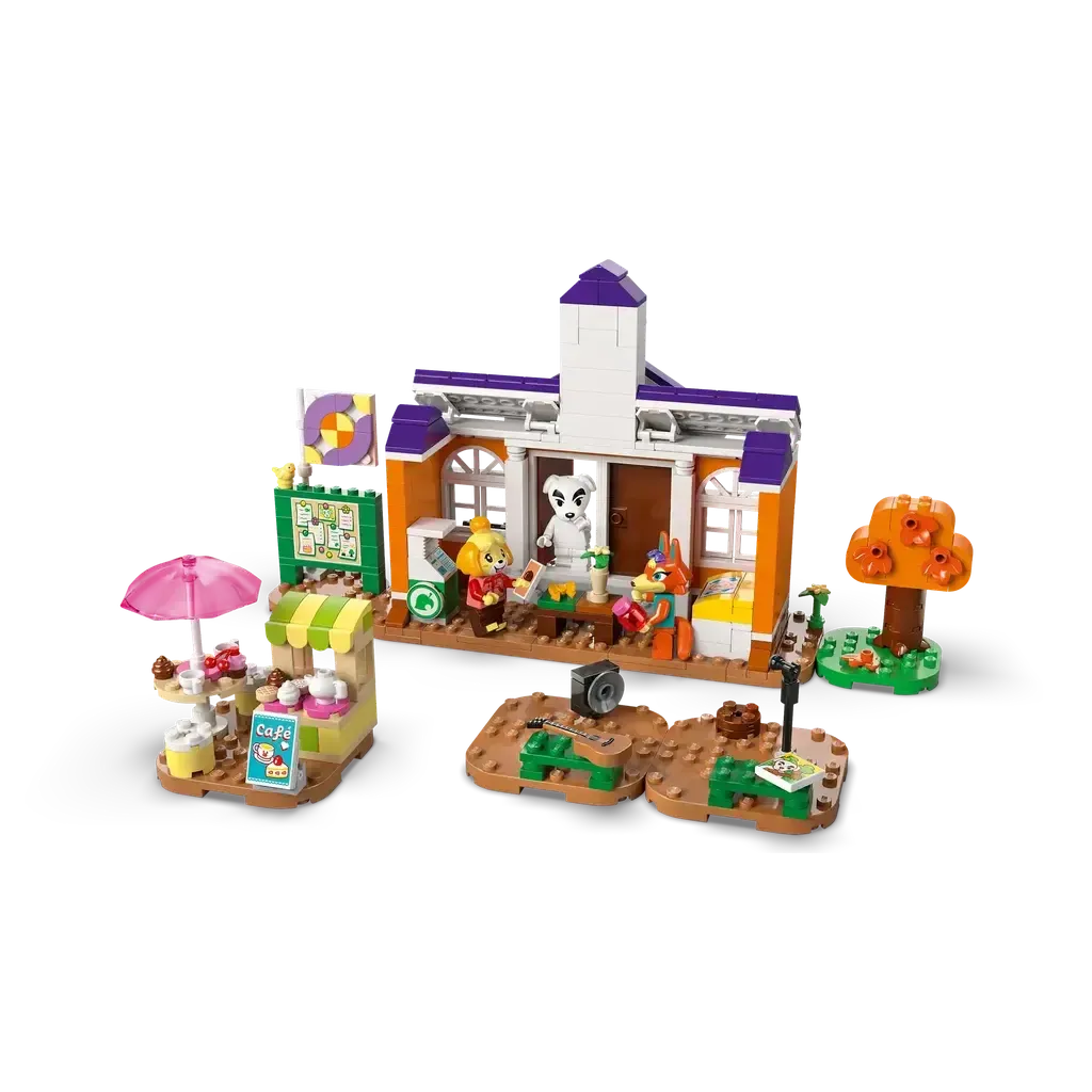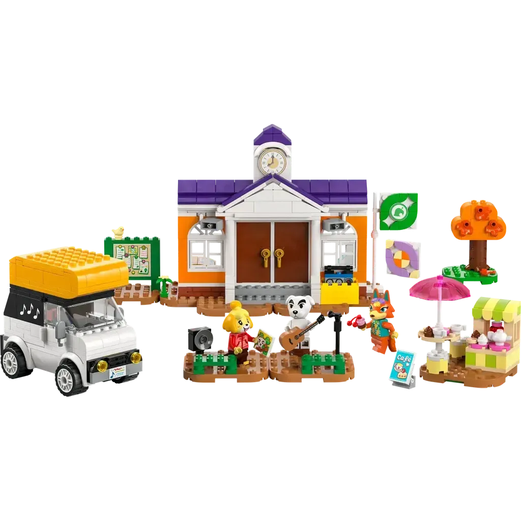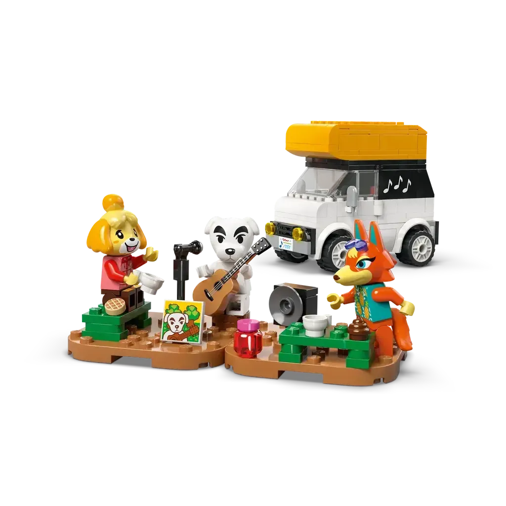 With 3 recognisable Animal Crossing™ characters – This brick-built playset includes K.K., Isabelle and Audie minifigures, a model of Resident Services with a café and a drivable camper van vehicle toy