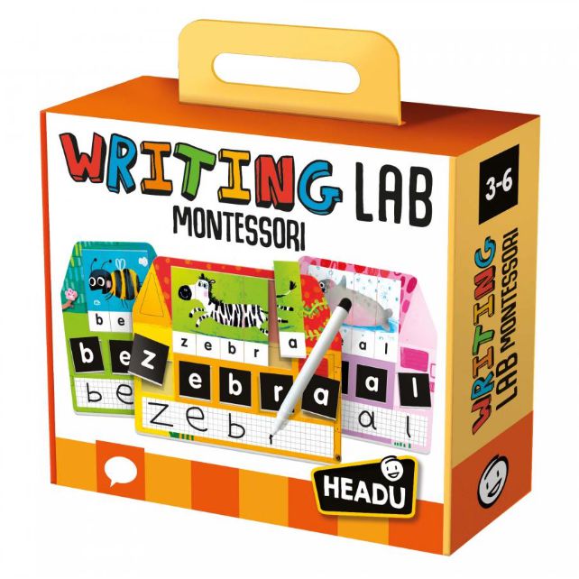Children put the word puzzles together in the little houses, write words using the moveable letters then practice writing them themselves with the pen provided. The game is inspired by the Montessori three-period method. Great way for kids to learn how to read and write in three ways. Develop manual dexterity using the marker and movable letters.