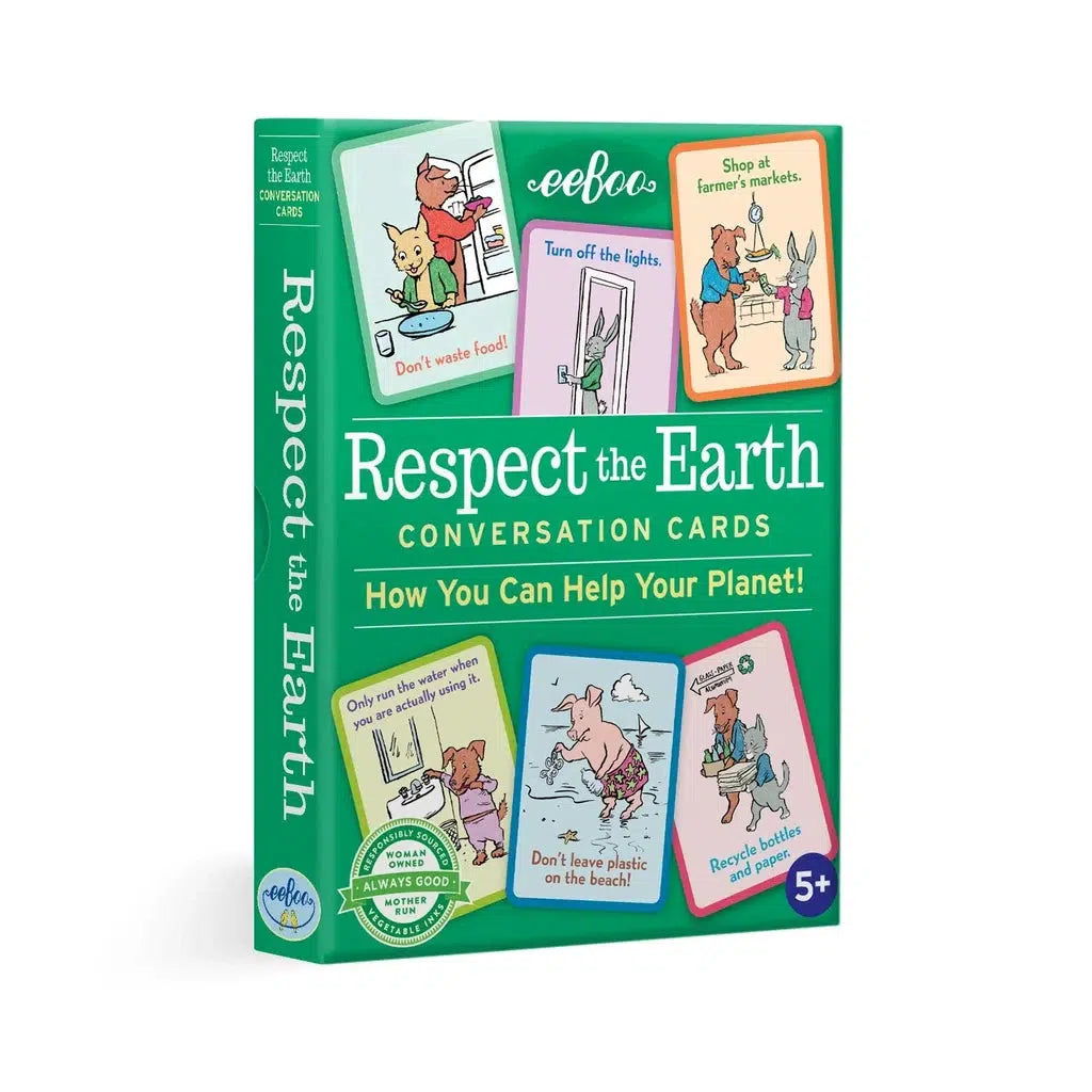 eeBoo's Respect The Earth Conversation Flash Cards feature engaging animals by illustrator Saxton Freymann demonstrating environmental responsibility and inspiring conversations about what each of us can do to make the world a better place. Tips on how to reduce, reuse, and recycle, promoting energy-saving habits, good citizenship, and global awareness. Cultivate kind behavior, thoughtfulness, and respect for others. Contains 48 flash cards that present situations and ask for an appropriate response. Whether reinforcing rules or introducing children to unfamiliar situations, these cards inspire conversations about responsibilities and values. Parent cards describe ways to use the cards, and suggest ways to reinforce conscientiousness.
