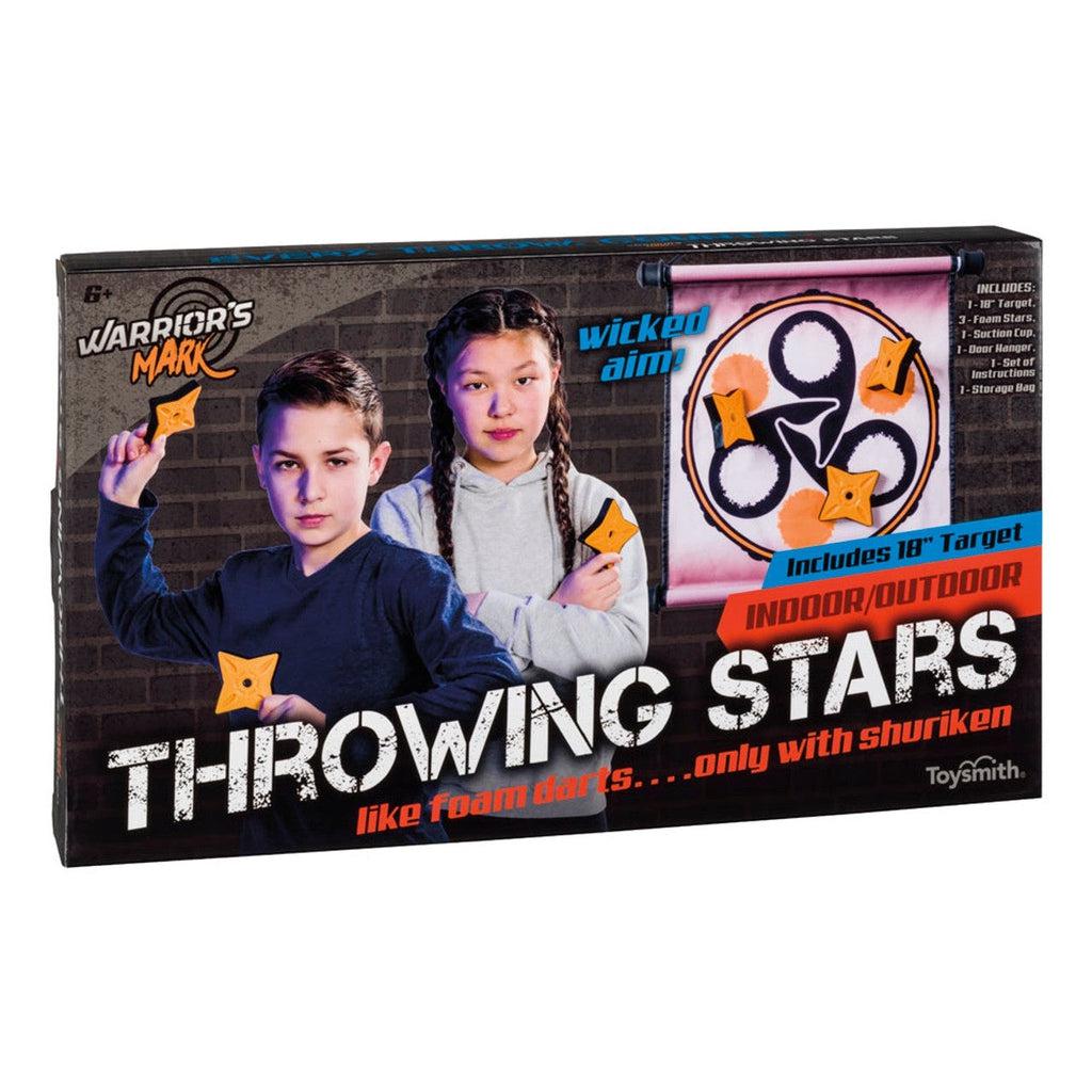 Take wicked aim at the next big thing, throwing stars! It's like playing foam darts...Only with shuriken! This game can be played indoors or outdoors. Includes 18in target, 3 foam stars, suction cup, door hook, bag, and instructions.