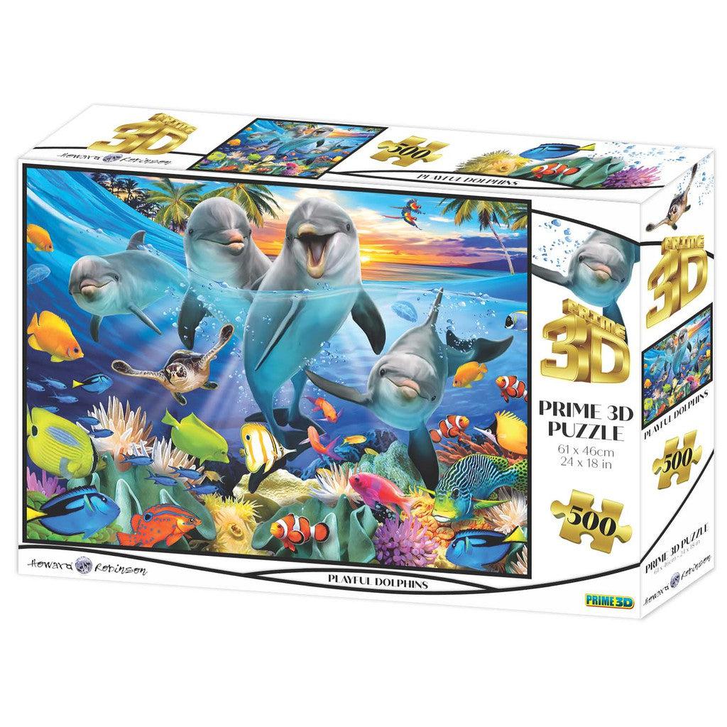 Dive into a world of wonder and enchantment with Playful Dolphins by Prime 3d Ltd. Created by renowned artist Howard Robinson, this 500-piece puzzle brings the beauty of dolphins and the mesmerizing sea life right into your home. With its 3D and lenticular puzzle types, each piece comes to life as you piece them together, creating a truly immersive experience. Measuring at 24" x 18", this jigsaw puzzle is perfect for both beginners and puzzle enthusiasts. Get ready to embark on an exciting underwater adventure that will captivate your senses and leave you wanting more. Let the excitement begin!