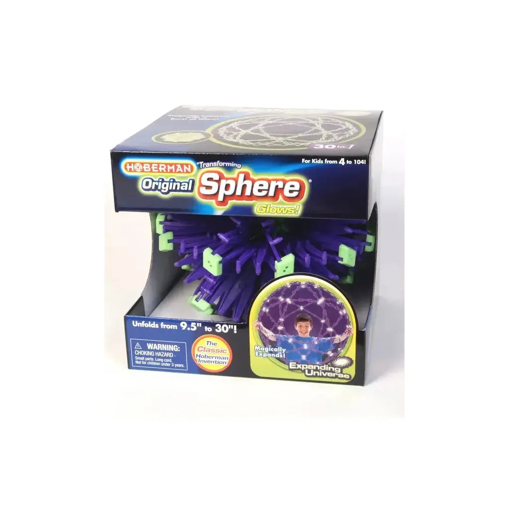 The Hoberman Sphere is the original award winning geometric expanding/contracting ball. Made of linked plastic struts each one is a marvel of mechani-cal engineering. Pull on any of the sphere’s hubs and watch as it expands dramatically from 9.5” to 30”! Kids want to touch it, adults want to examine it, and everyone wants to play with it. All spheres come with a pulley, hardware and instructions to hang as a cool, kinetic mobile. An educational booklet about the geometry of the Sphere and a “21 Cool Things to Do” activity sheet is also included.