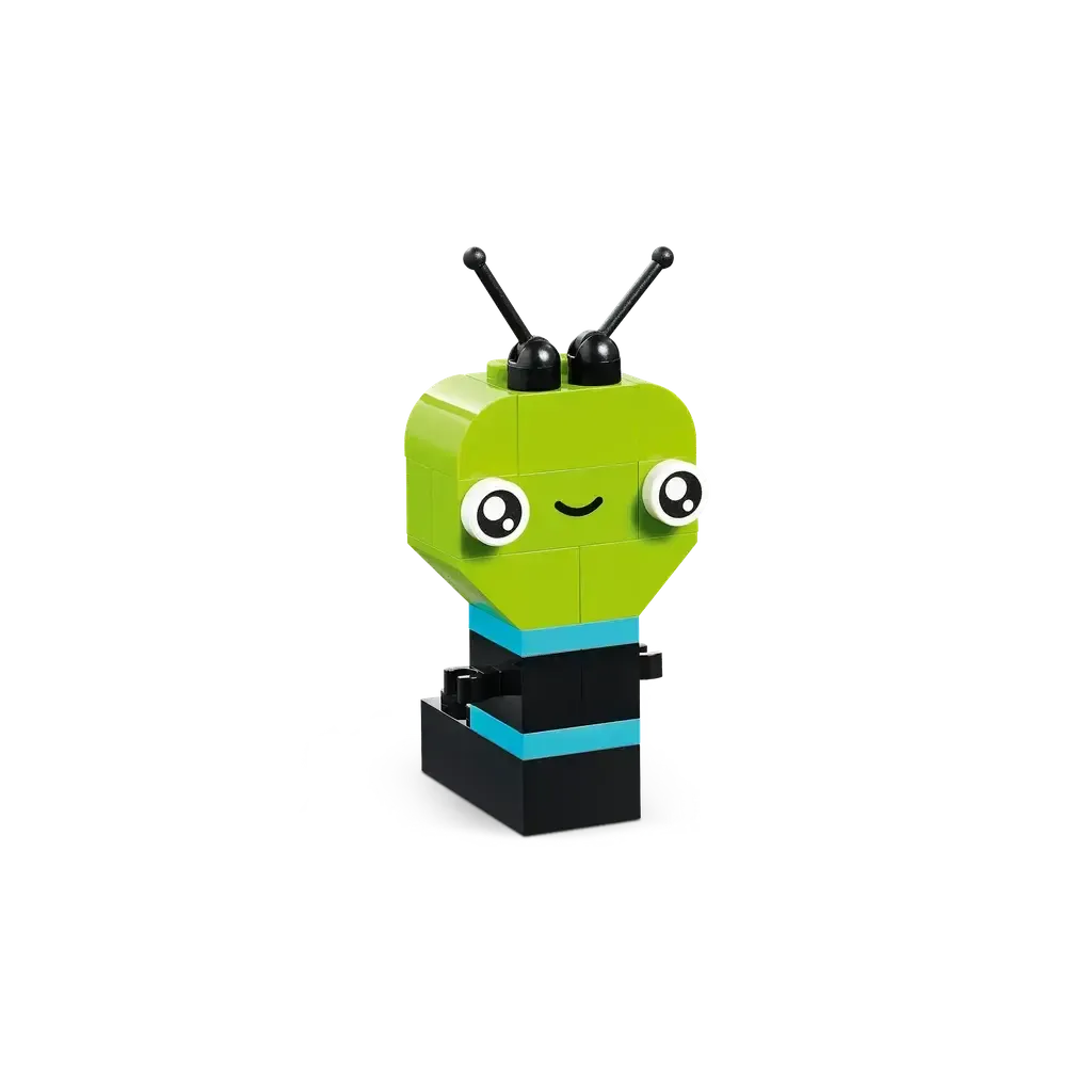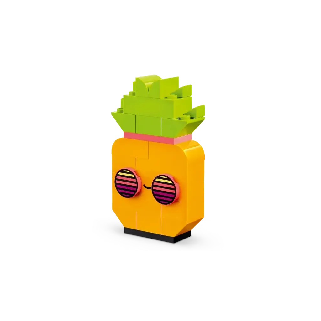 This versatile building kit contains 333 LEGO building bricks in various sizes and bright neon colours. 18 of the pieces feature expressive eyes that kids can use to bring their creations to life. Printed building instructions are included for 5 fun models – a pineapple, highlighter pen, car, alien and roller skates – giving kids the creative confidence they need to build whatever they imagine! A digital version of the set’s building instructions can also be found within the LEGO Builder app.
