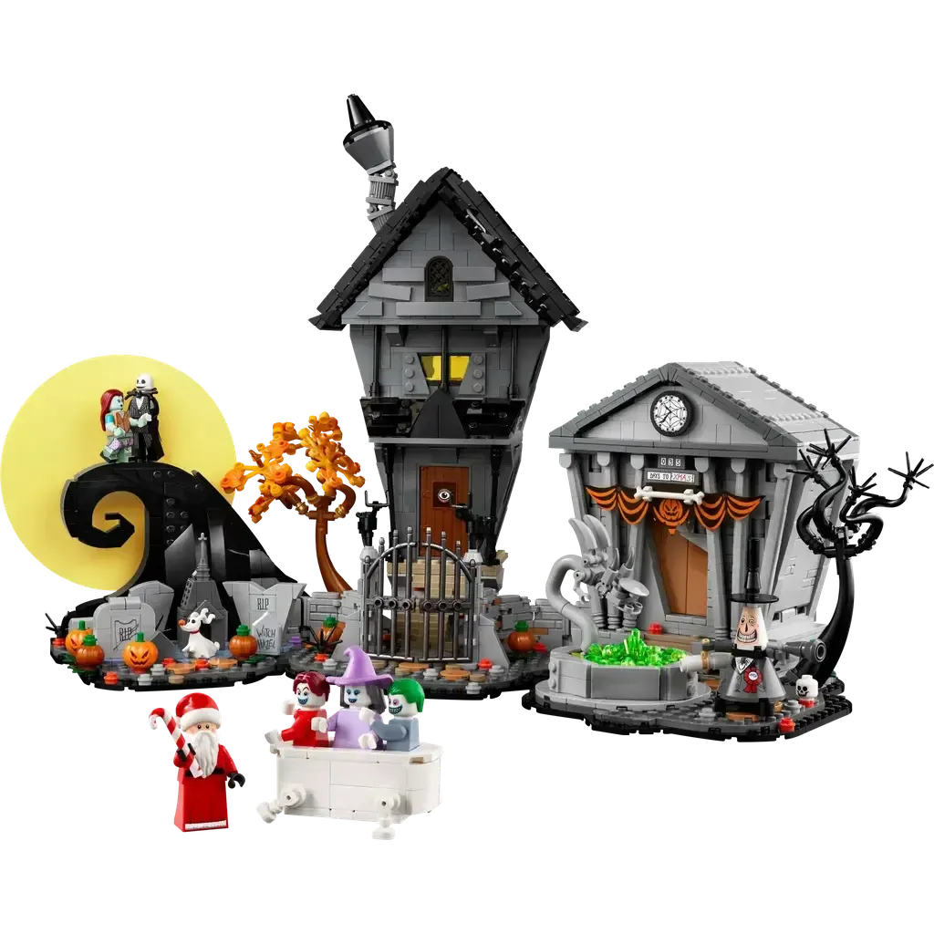 8 Tim Burton’s The Nightmare Before Christmas characters – Jack Skellington, Sally, Santa Clause, Lock, Shock and Barrel LEGO® minifigures, plus Zero the dog and a buildable, 2-faced The Mayor figure