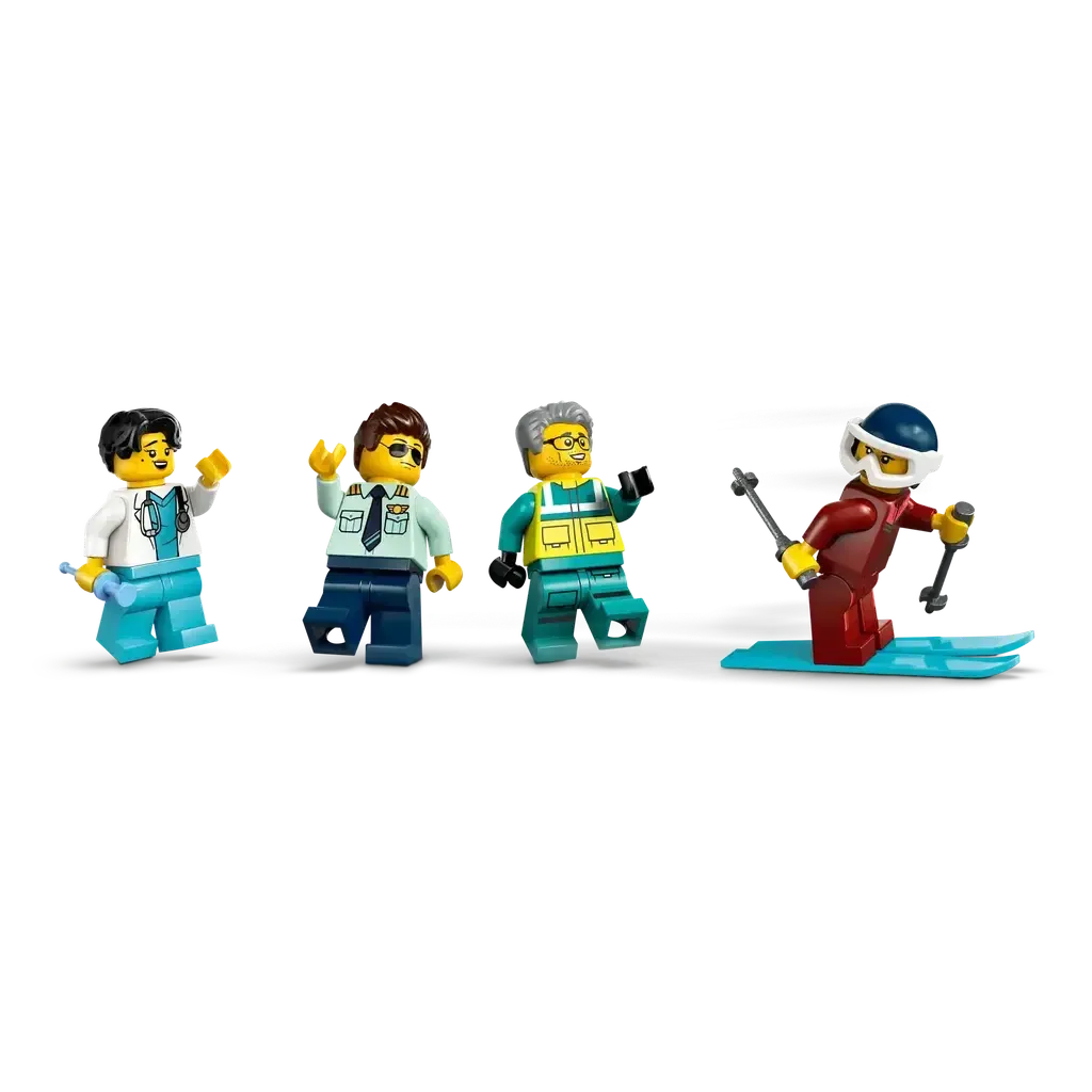 What’s in the box? – Includes everything kids need to build a toy ambulance plane, snow scooter and a small airport scene with a toy wind sock, plus pilot, doctor, paramedic and skier minifigures