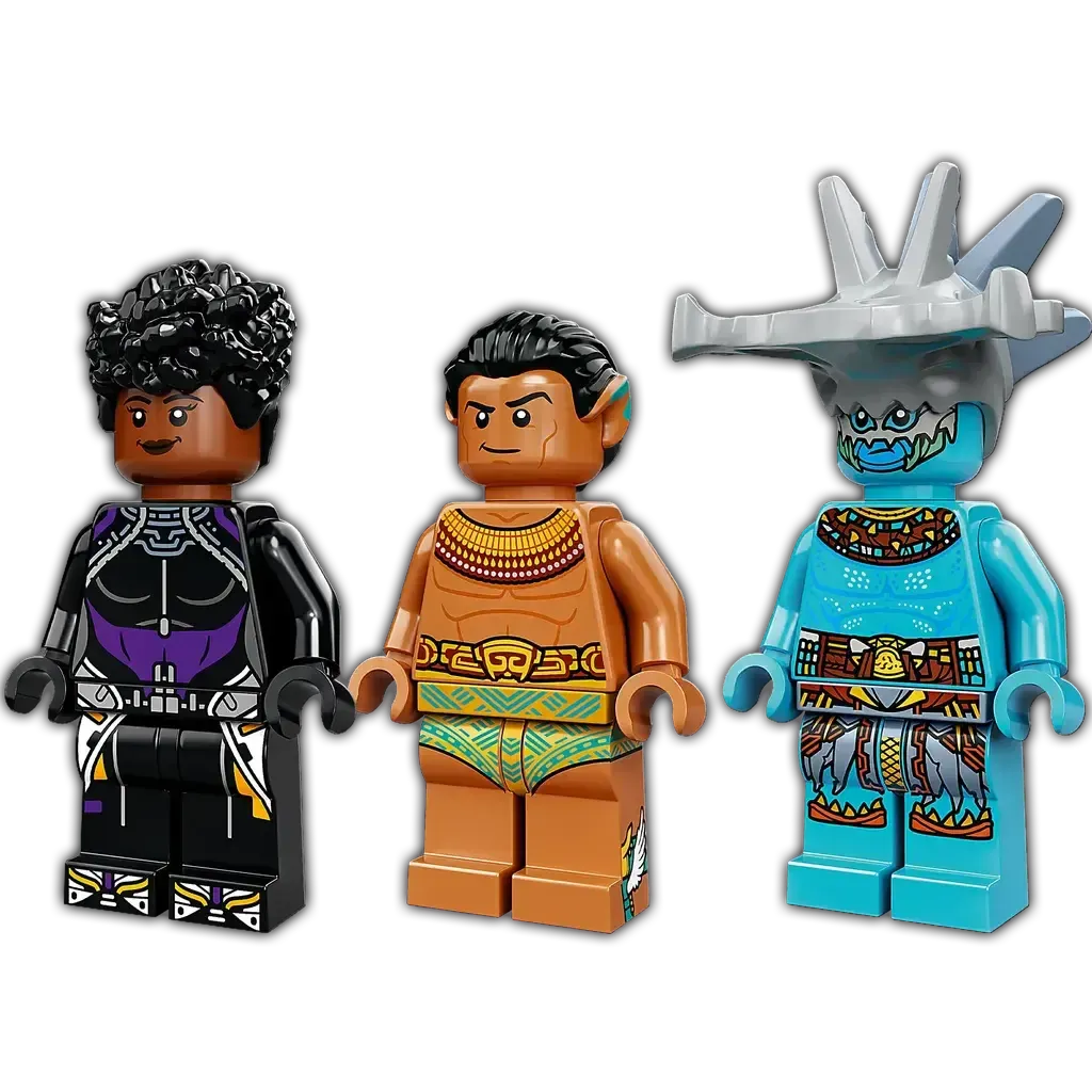 The sleek and stylish Skirmisher submarine toy for kids from Marvel Studios’ Black Panther: Wakanda Forever features stud shooters that kids can fire as they battle the villain Attuma. At the end of the sub’s journey, they’ll discover the Temple of King Namor and the King’s seaweed-decorated throne room. When this mission is over, kids return to the submarine and set off on the next of many more underwater adventures. The set includes 3 Black Panther character minifigures – Shuri, Attuma and King Namor – along with their cool weapons and accessories.