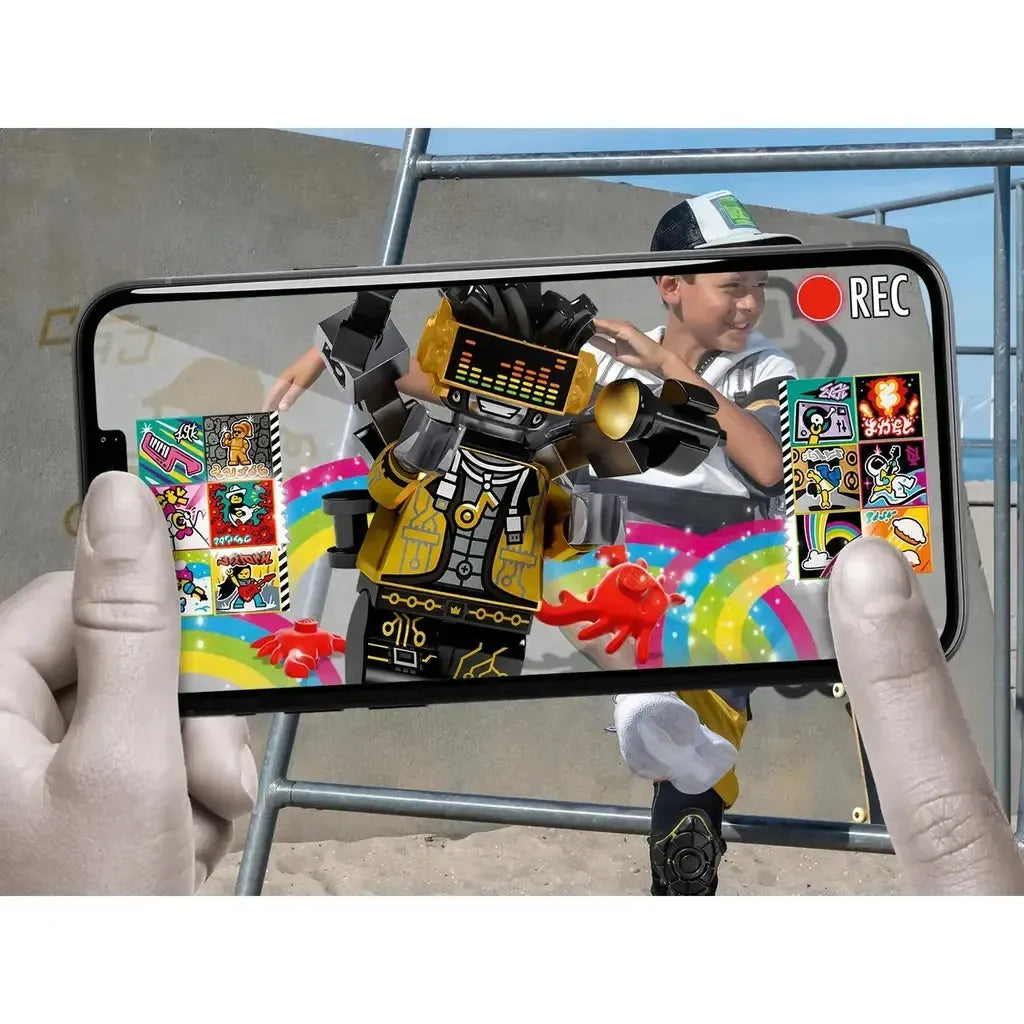 Direct, produce and star in your own music videos with the LEGO® VIDIYO™ HipHop Robot BeatBox (43107) set. Use the app to bring the robot to life within an awesome hip-hop music video to share online. Check out special effects, like the bling effect. This filter makes everything black and white except the minifigures, who become gold. Ready to go on tour? Cool! Your BeatBox folds up to take along.