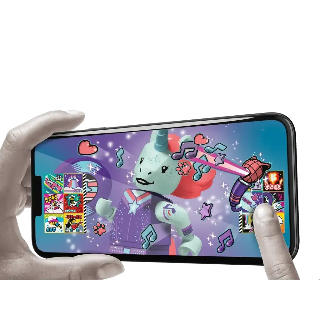 Direct, produce and star in your own music videos with the LEGO® VIDIYO™ Unicorn DJ BeatBox (43106) set. Use the app to bring the unicorn DJ to life within an awesome K-pop-inspired music video to share online. Add fun special effects to the dancefloor, like a LEGO castle with clouds and rainbow waterfalls. Ready to go on tour? Cool! Your BeatBox folds up to take along too.