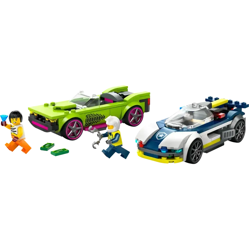 Your City, No Limits! LEGO City sets make a perfect gift for any child who loves pretend play. The feature-rich structures, realistic vehicles and inspiring characters allow kids to explore the world around them through stories and scenarios that depict life in a fun and exciting way. This police toy set featuring a police car toy and green muscle car toy makes a great gift for 6+ year old boys, girls and kids who are fans of LEGO City police sets.