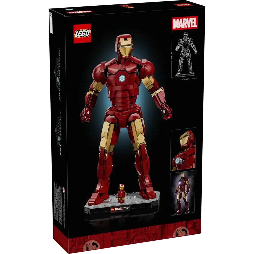 - IRON MAN BUILDING SET – Adult fans can indulge their passion with LEGO® ǀ Marvel Iron Man Mark 3 Collectors’ Edition (76344), a posable display figure standing over 15 in. (38 cm) tall