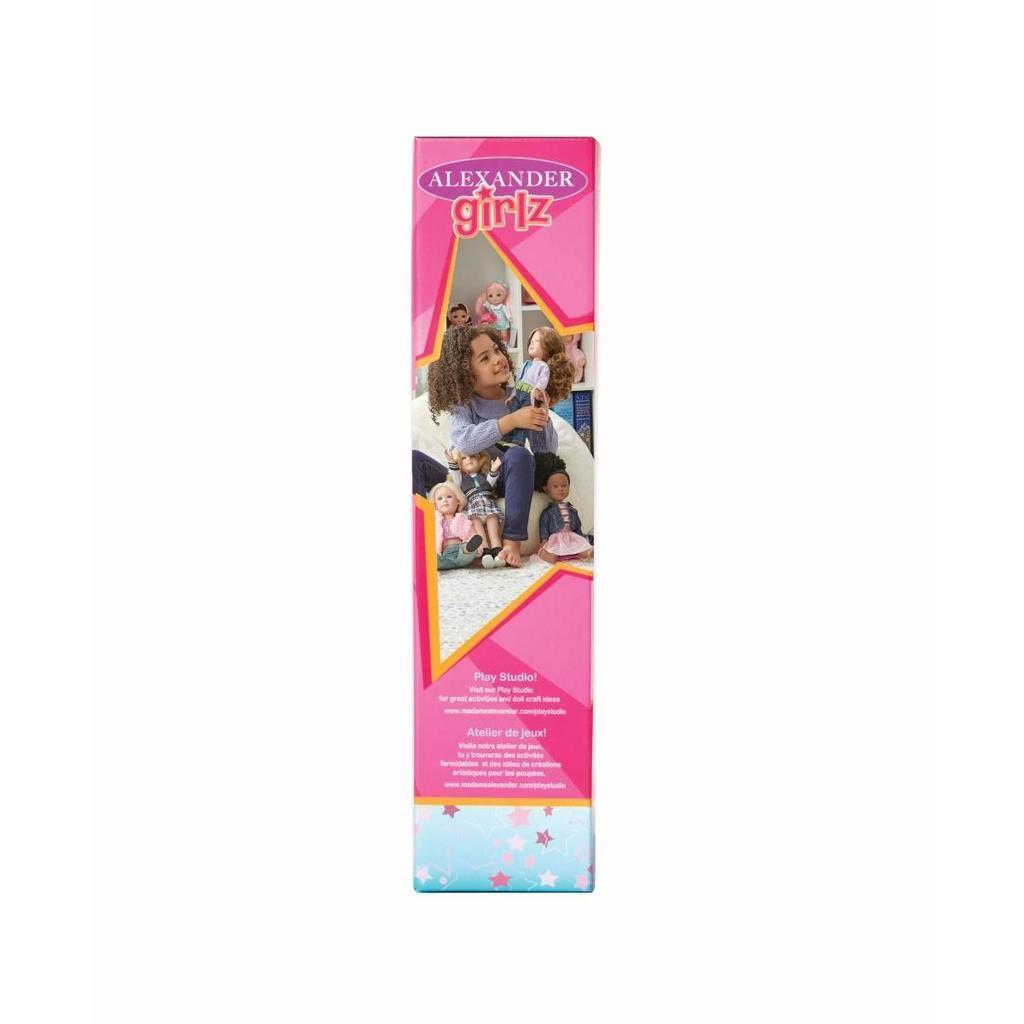 Say hello to Alexander Girlz! These fashionable girls spread joy wherever they go, and help kids be kind and dream big! These beautiful 14-Inch poseable dolls have rooted hair, fixed eyes, and are dressed in stylish outfits. Zola is dressed in a full-length tulle skirt with a cropped tie front tee layered under a denim jacket. Alexander Girlz have lots of fun sharing friendship! These beautiful 14-Inch poseable fashion dolls with rooted hair and fixed eyes are dressed in stylish outfits and wear warm smiles. They spread joy wherever they go, and help kids be kind, dream big, and play imaginatively! Engage your child in imaginative play with this doll, teaching kindness and empathy. Doll wipes clean with damp cloth. Features dark skin, brown eyes, and black hair. Recommended for ages 3 and up.