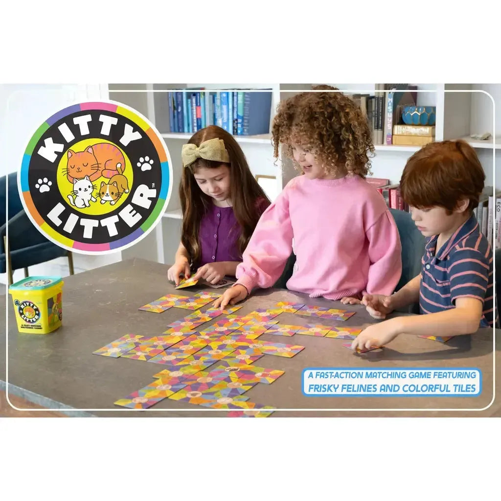 This kitty litter pail-inspired matching game features mischievous kawaii kitties. Players race to match all their colorful tiles first in simultaneous, easy-to-learn play. Quick rounds and endless fun make this game a purr-fect addition to any family collection!