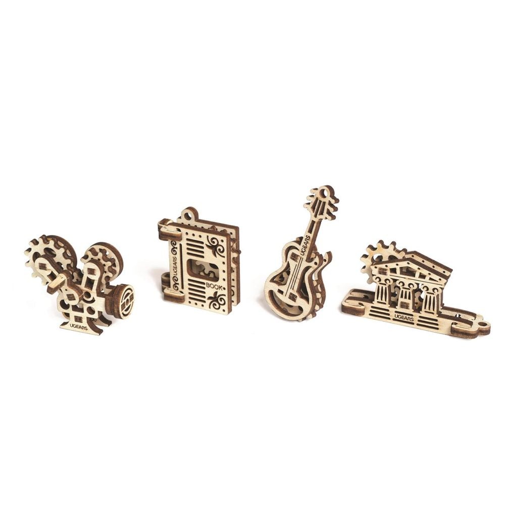 U-Fidget: Creations is the next themed set in the line of Ugears U-Fidget individual miniature models. Creations set includes a Movie Camera, a Guitar, a Book and a Parthenon. Each featuring a real mechanical motion component, they are ideal for stress relief, settling anxiety and helping focusing and concentration. Easy to assemble, U-Fidget Creations are made with high-grade natural wooden materials and are perfect as a small token of gratitude or a party favor.