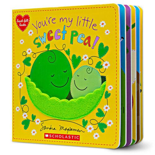 Your little one won't be able to resist the bright, interactive, soft felt on the cover and every page that is sure to keep them captivated and engaged during storytime. The soft and adorable felt touches throughout can be lifted to reveal sweet and delicious surprises in this interactive novelty book. The combination of fruit- and veggie-inspired terms of endearment and this playful read aloud rhyme is brought to life with soft-as-can-be felt that will have sweet peas far and wide feeling the love!