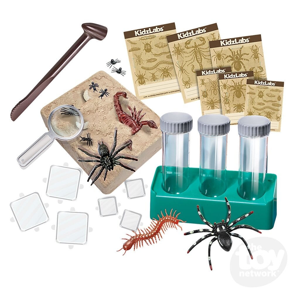 Embrace your inner mad scientist with this Creepy Crawly Digging Lab. Dig through the plaster to discover creepy crawlies like glow-in-the-dark maggots! Includes test tubes and ID cards for scientific analysis.