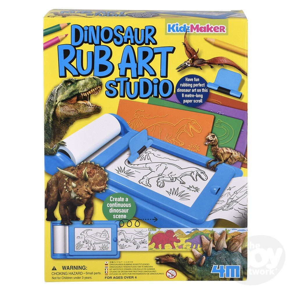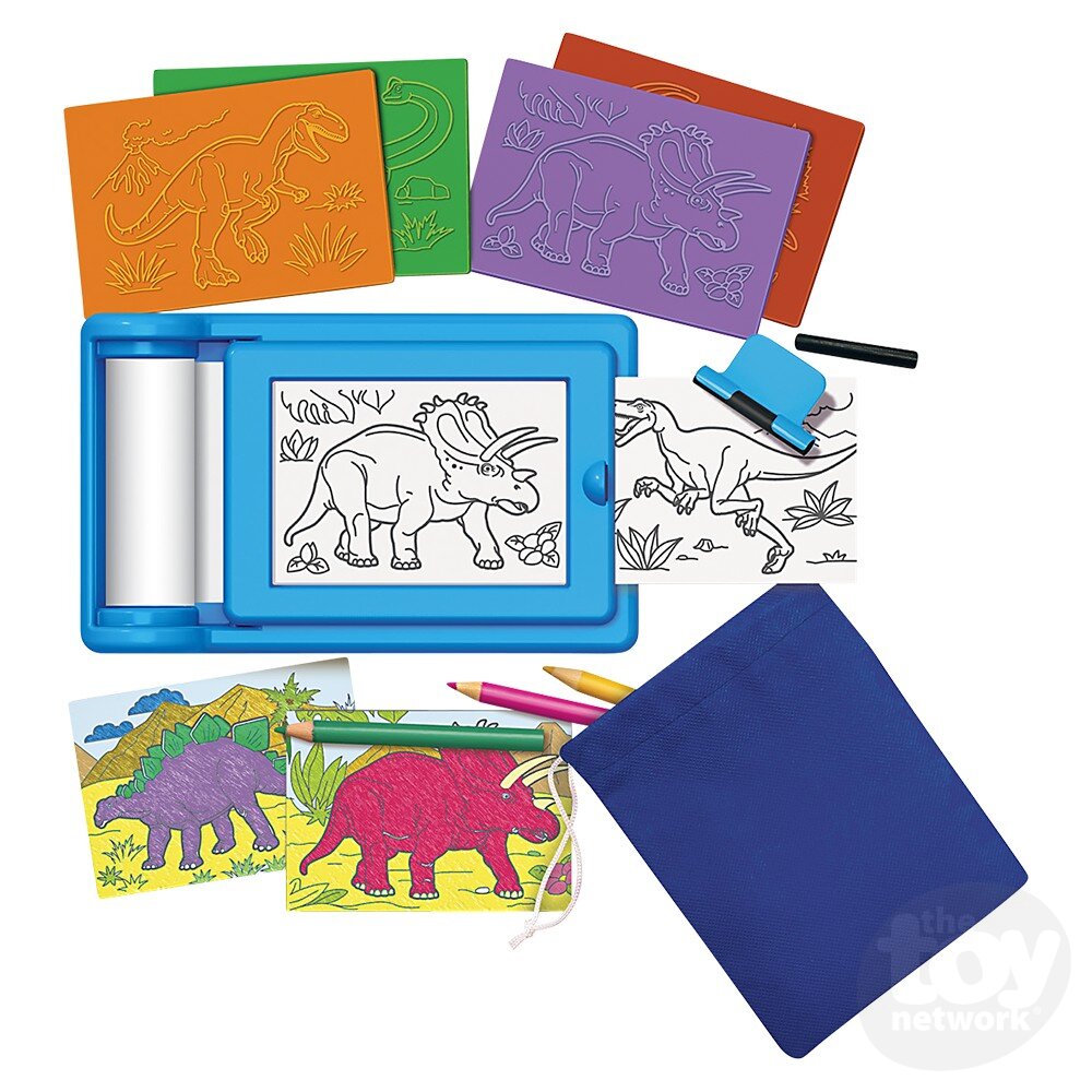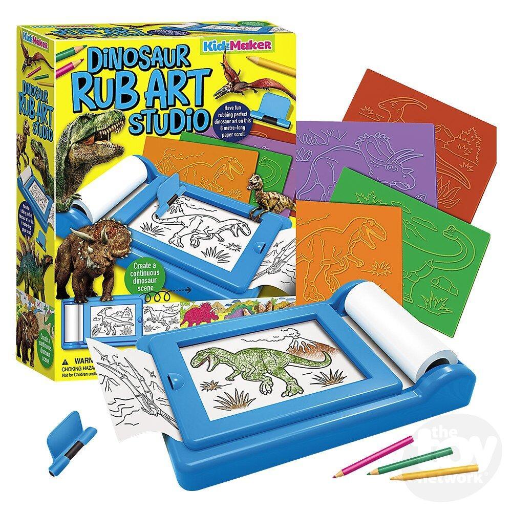 Print your own dinosaur-themed coloring pages with the KidzMaker Dinosaur Rub Art Studio. Includes a unique device to roll and print on paper, stencils, and coloring tools. Great hands-on creative activity.