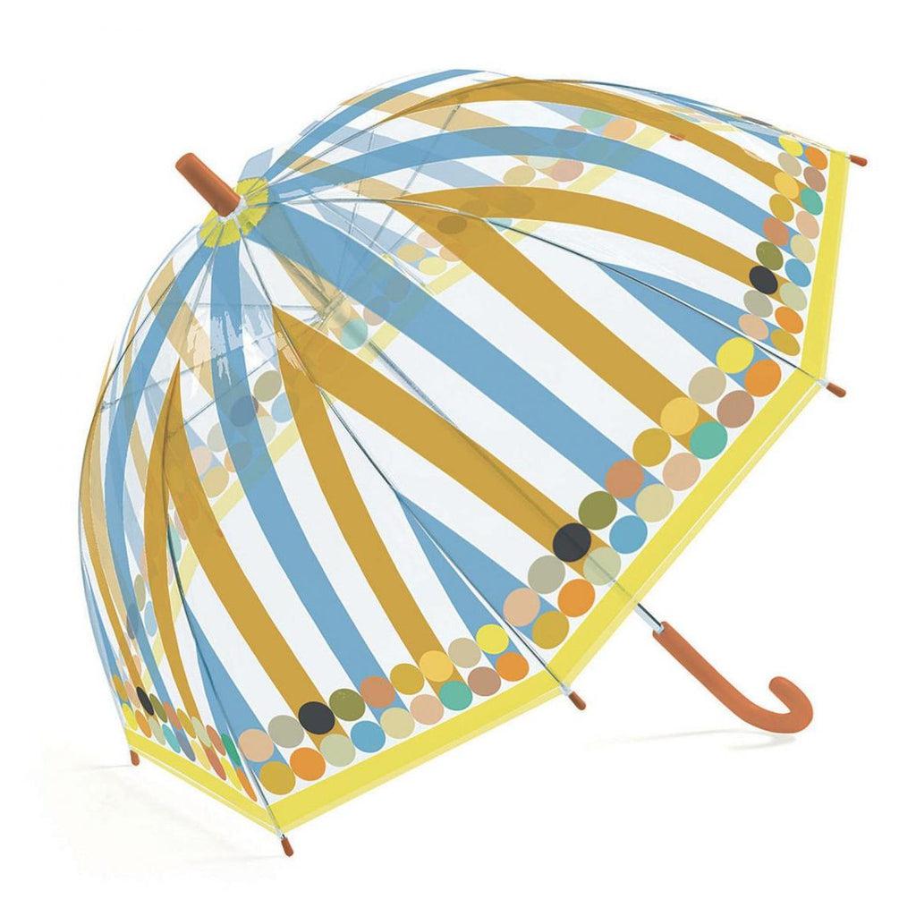 A colorful and graphic umbrella to brighten a rainy day! The transparent PVC allows a child to see where they are going and the high dome provides better coverage.