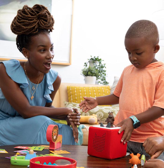 Toniebox was designed to be the perfect companion for any child's playroom or bedroom. The Toniebox comes alive when paired with a collection of Tonies, hand-painted characters that have stories to tell and songs to sing.
