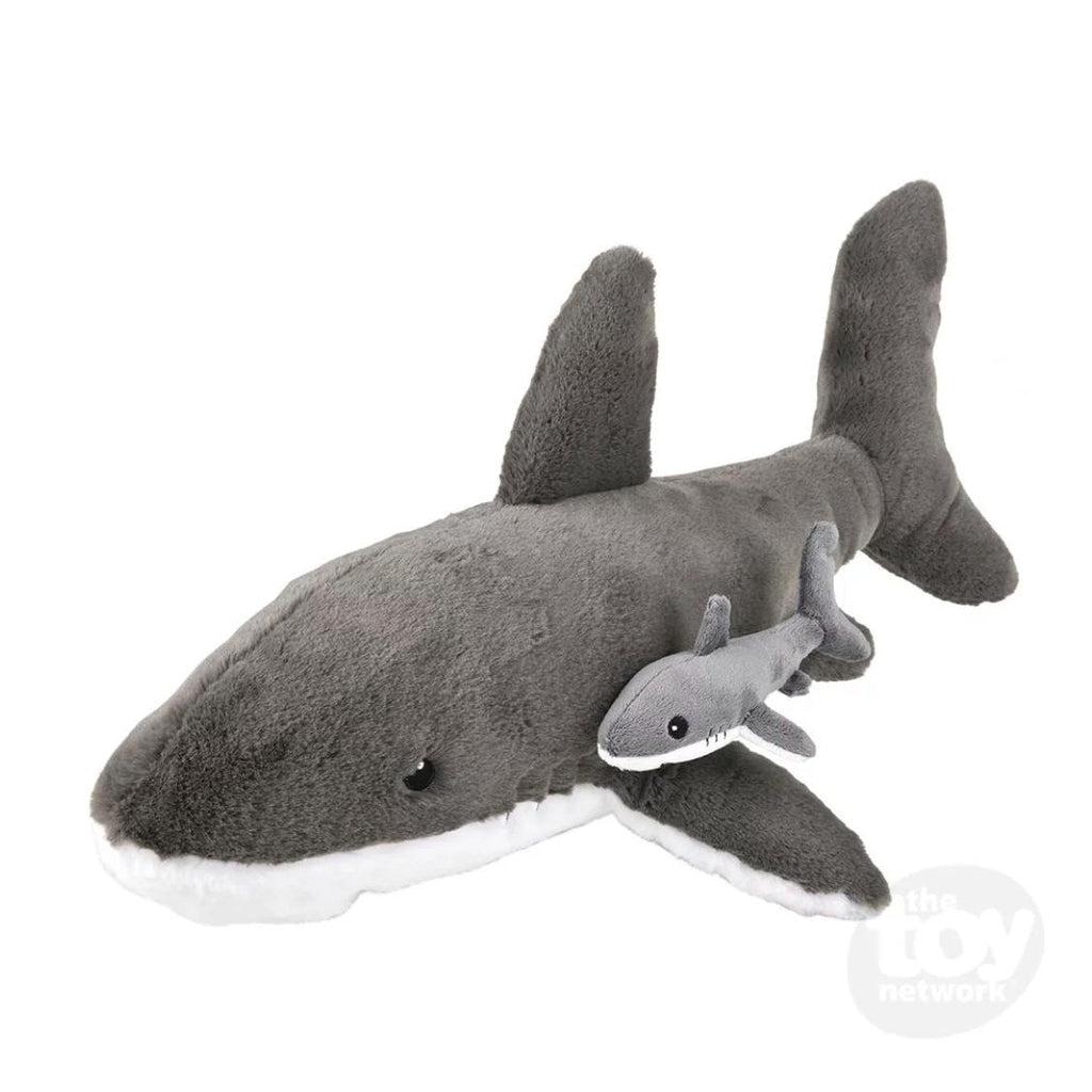 They are soft to the touch and so cute! You can collect all the Birth of Life bundles! This adorable adult and baby great white shark has no plastic pellets with stitched eyes and nose. This globally responsible product is packaged in recycled material cartons and manufactured with 100% recycled plush material. Additionally, its fiber filling stuffing is made from 100% recycled plastic.