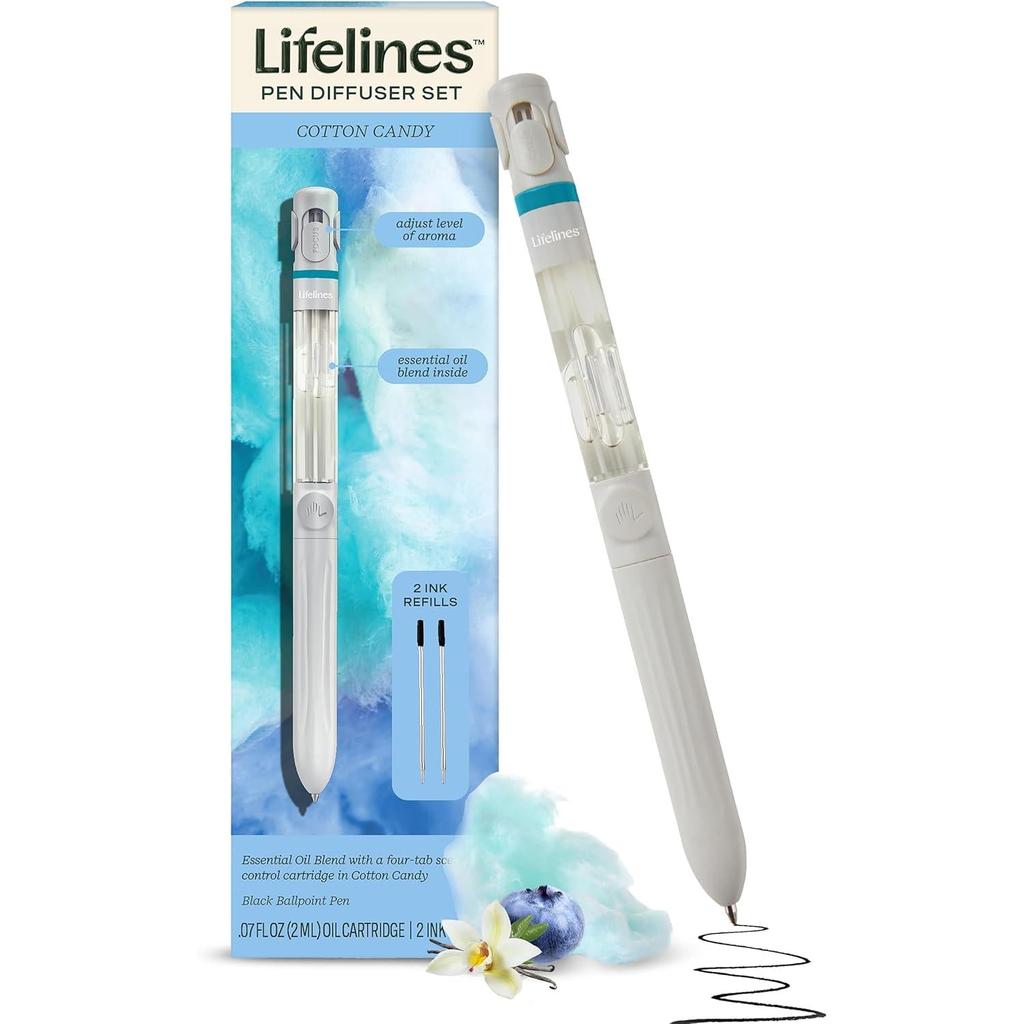 Pen diffuses an Essential Oil Blend with notes of blueberry, spun sugar, and vanilla. Includes 2 ink refills so you can activate your senses (and enjoy a sweet trip back to the candy store) for as long as you write.