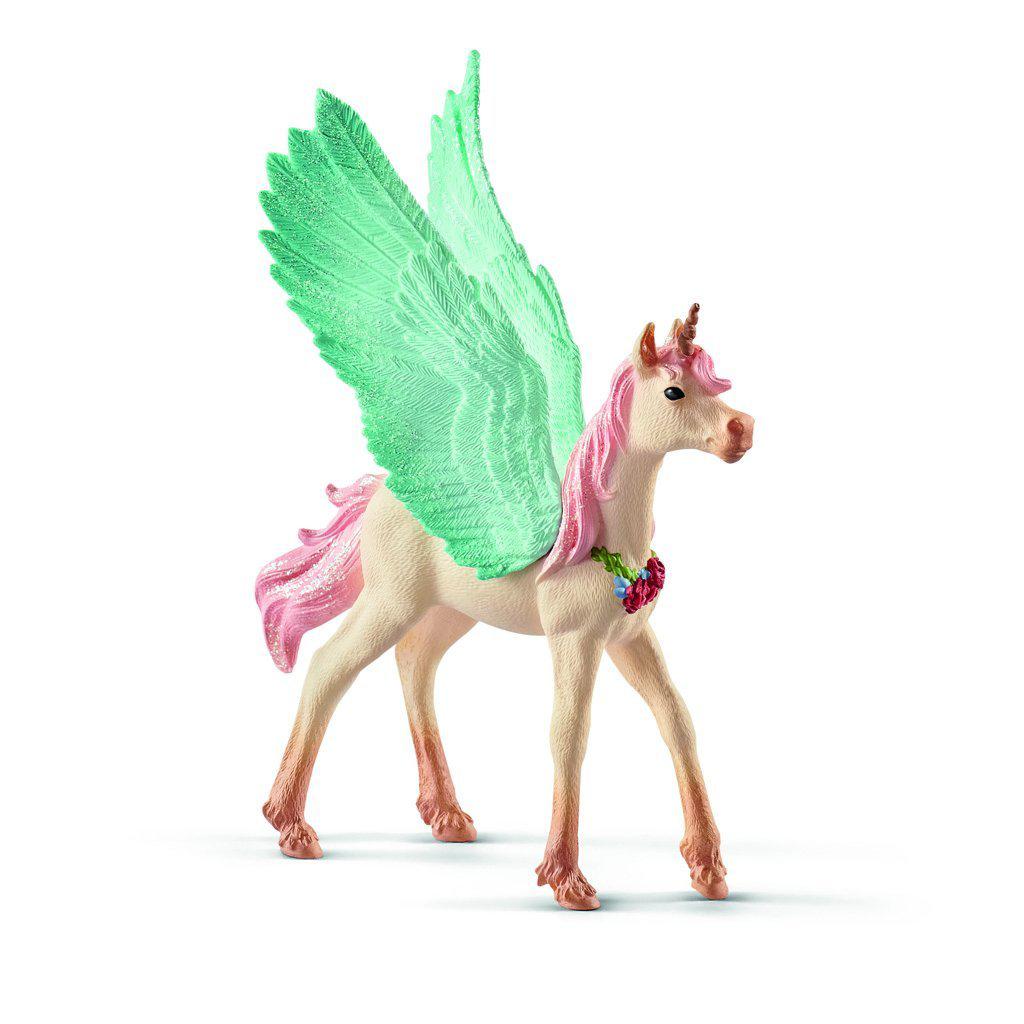 There are lots of magical creatures in bayala, but most of them are very shy and you can only catch a glimpse of them if you are very lucky. The most beautiful animals are arguably the flying horses and the unicorns. In a glade in the forest, not far from the elf town of Soleyas, lives a very special family: A Pegasus, a unicorn mare and their young. The little winged unicorn is one of the most mesmerizing creatures in all of bayala. He has a twisted magic horn and wings like his father. The little one frolics around all day and is learning to fly right now. He’s much more daring doing so than daddy Pegasus would like. He even dares to do extremely risky flying maneuvers. He also likes being stroked by the elves and proudly wears their decorations. Would you like to have a flying race with the elves and the little foal?